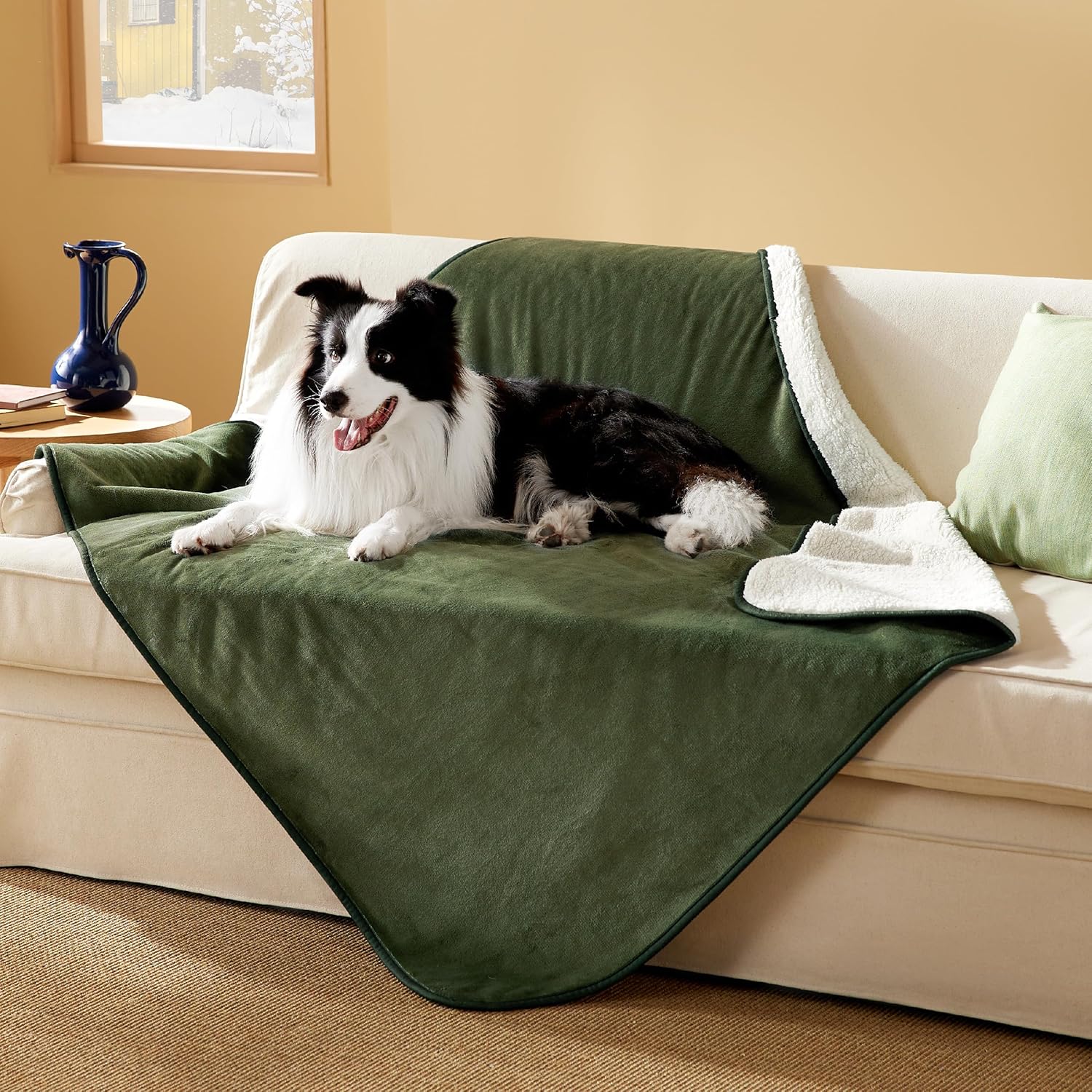 LE SURE Водоустойчиво поларено одеяло, което може да се пере, 60 x 50 инча, голямо одеяло за деца и големи кучета, персонализирано покривало за кучета, предпазва леглото и дивана с мек плюш, маслинено зелено