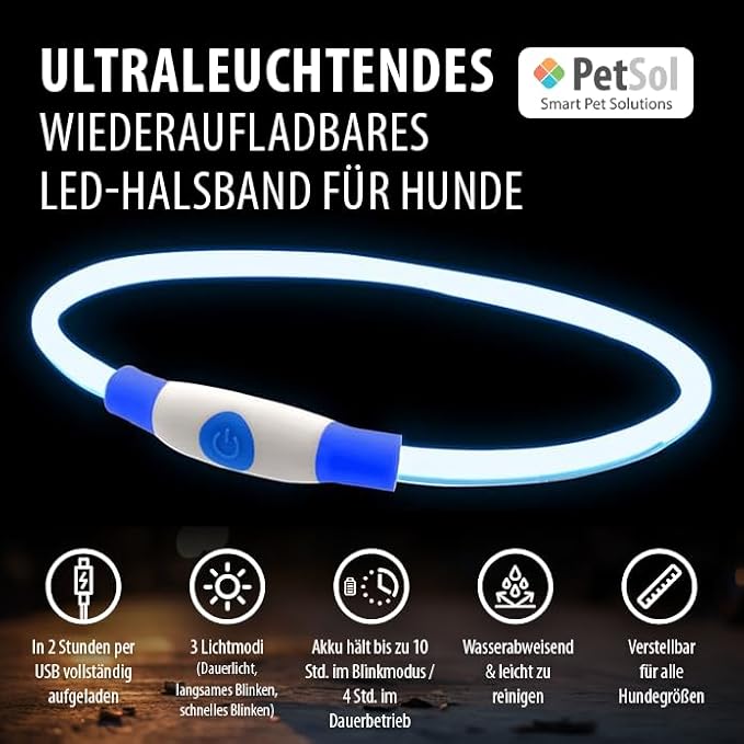 F5 Superbright LED диодите са най-ярките на пазара. Акумулаторна литиево-йонна батерия за ежедневно зареждане. TPU каишка, без вода и мирис - много лесна за почистване. 3 режима на светкавица - бърза, стабилна и постоянна. Универсален размер. Просто отрежете каишката, така че да пасва на вашето куче.