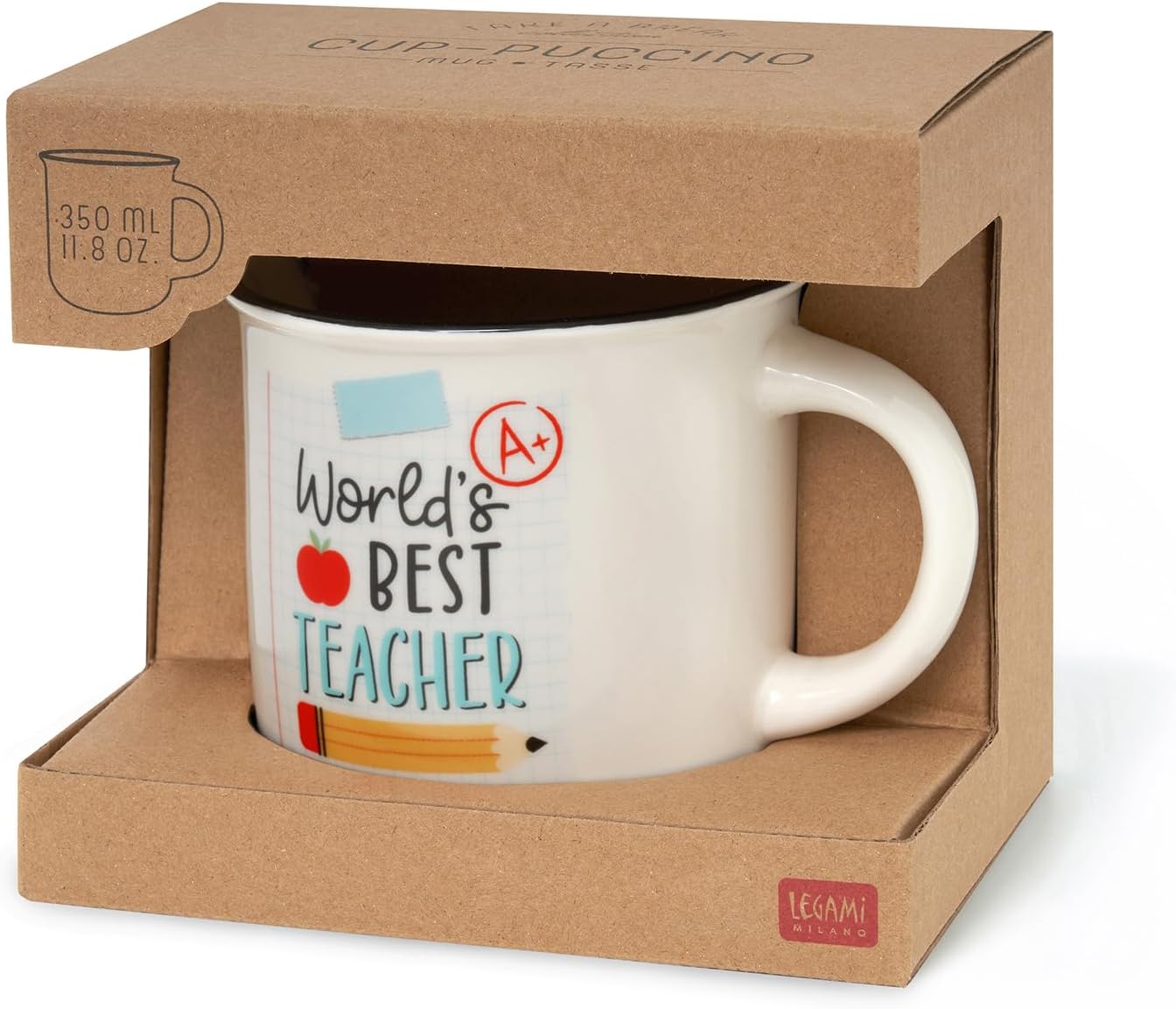 Legami - Чаша за капучино, тема „Учител“, порцелан New Bone China, колекция Take a Break, вместимост 350 мл, подходяща за съдомиялна машина, за учител
