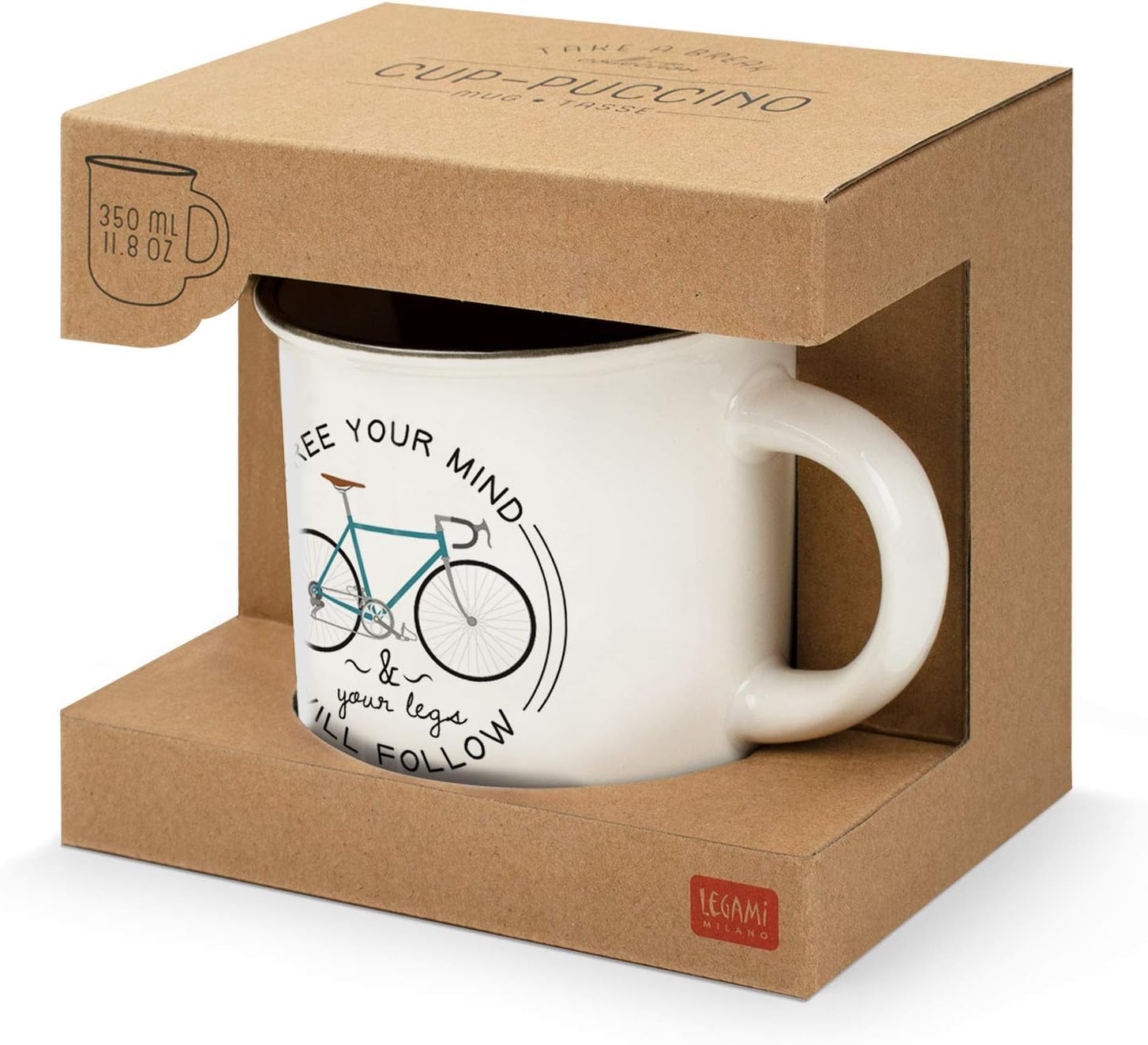 Legami - Чаша за капучино, тема велосипед, порцелан New Bone China, колекция Take a Break, вместимост 350 мл, подходяща за съдомиялна машина