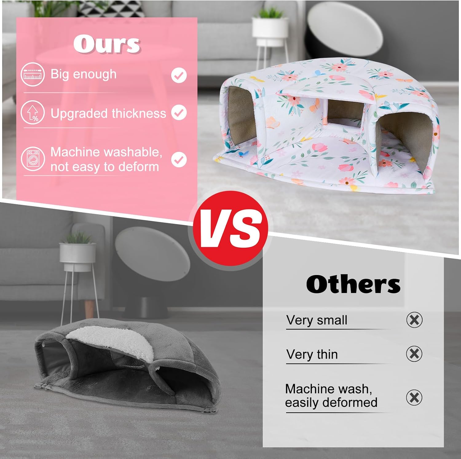 • Може да се пере в пералня: изработено от мек плюш с къс косъм и еластична гъба, това скривалище остава удобно и издръжливо след многократно пране, запазва формата си и предлага на вашия домашен любимец топлина и комфорт, дори след многократна употреба.
