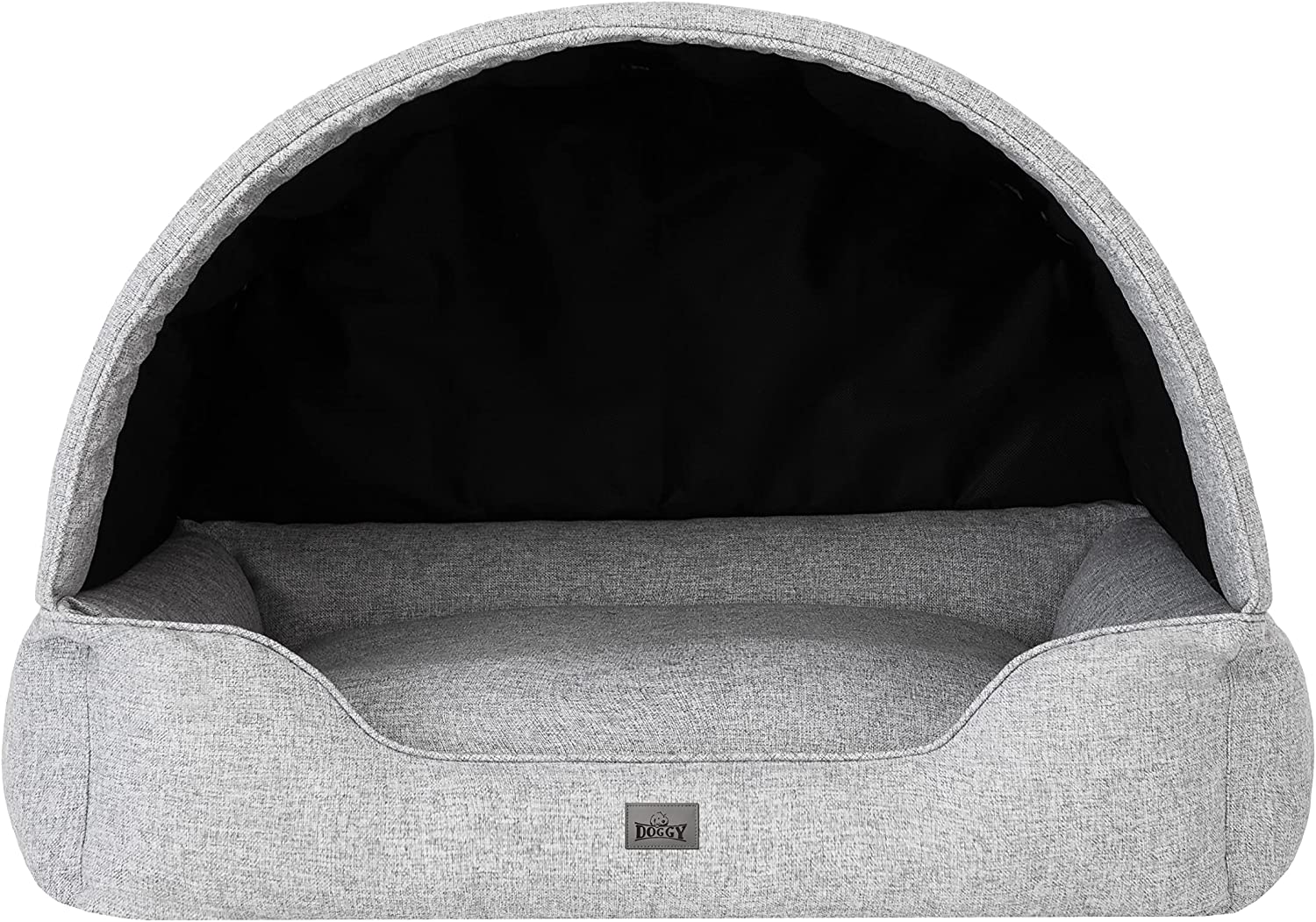 Легло за домашни любимци Doggy, 82 x 58 см, Удобна и мека основа, Овален покрив, Водоотблъскващо покритие, Сиво