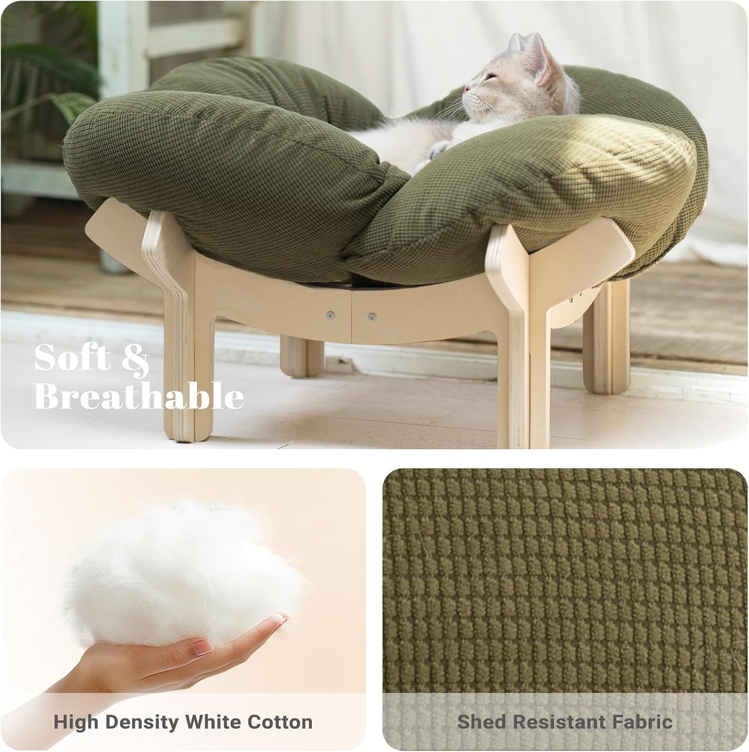 • ДИЗАЙН, ПОДХОДЯЩ ЗА КОТКИ: С височина от 10 см, този диван е идеален за котки, тъй като позволява на въздуха да циркулира отдолу, за да осигури охлаждане и вентилация. Освен това предотвратява домашния ви любимец да лежи дълго време на пода.