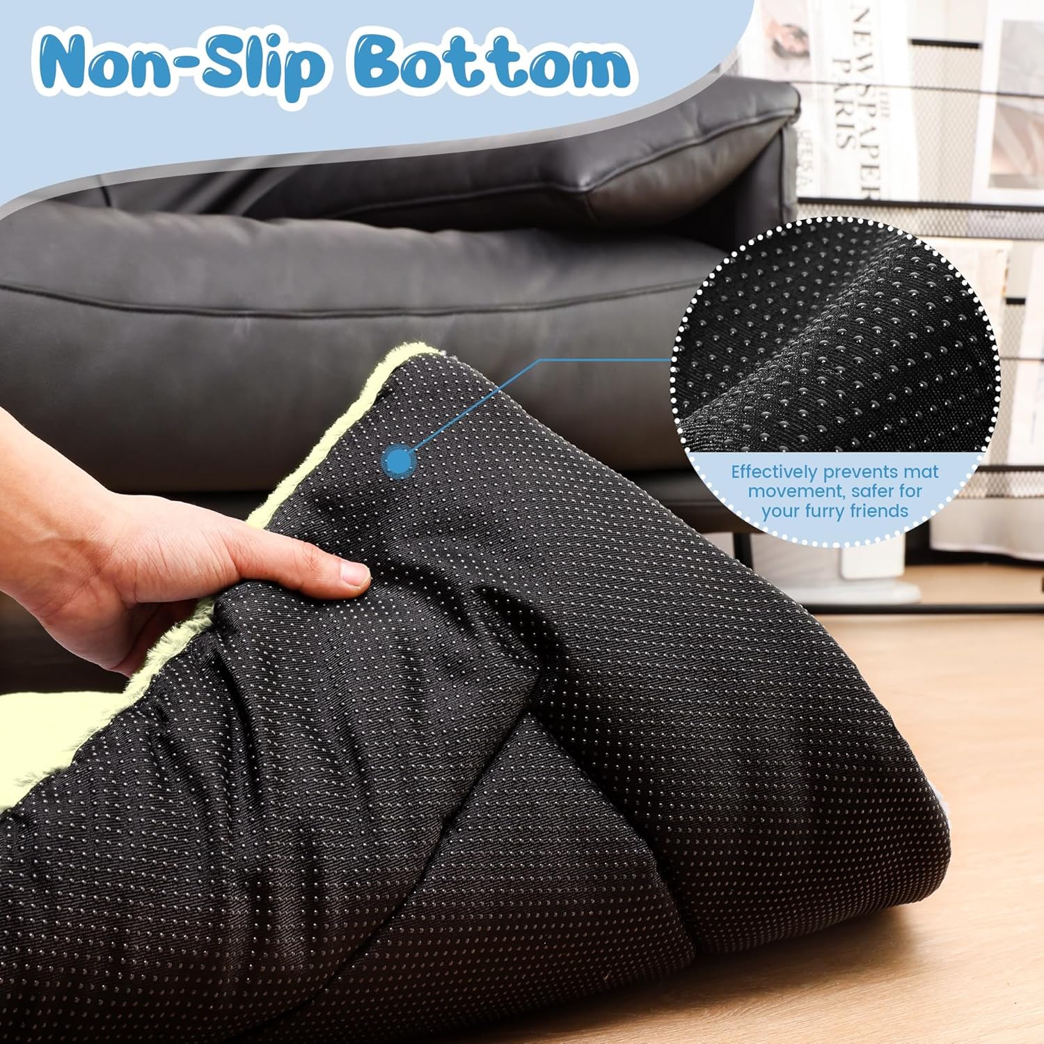 • Неплъзгащо се и може да се пере в пералня: Одеялото за кучета, което може да се пере, е снабдено с неплъзгаща се долна страна, която ефективно държи постелките за кучета на място. Край на притесненията, че кучетата ви ще се подхлъзнат, докато играят на постелките.