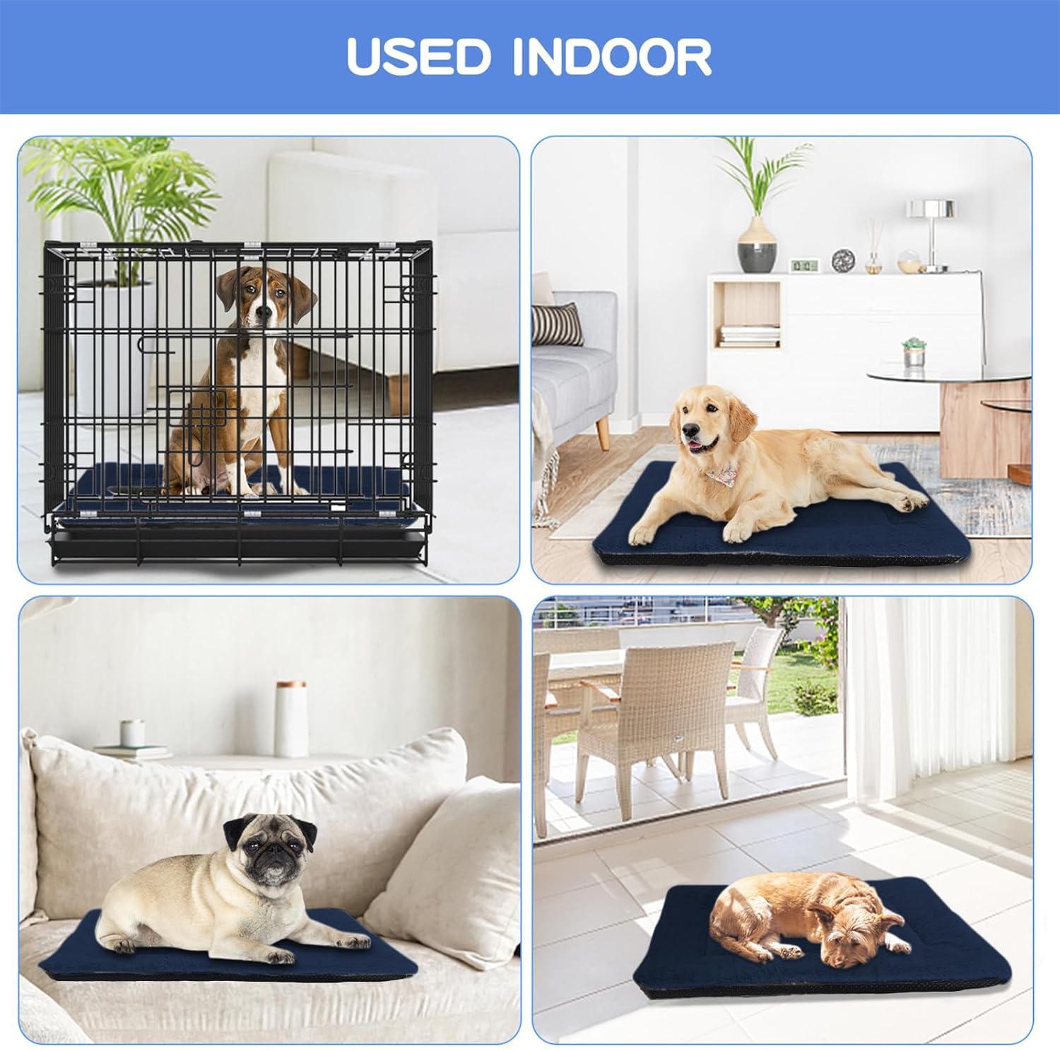 • Многофункционално приложение: Това кучешко легло може да се постави на килима и пода, за да могат кучетата да се насладят на съня си. Големият кош за кучета е идеален като матрак за клетка за кучета с основа от 91 см. Тези кучешки легла са много леки, така че можете да ги вземете и на пътувания или да ги държите в колата си.