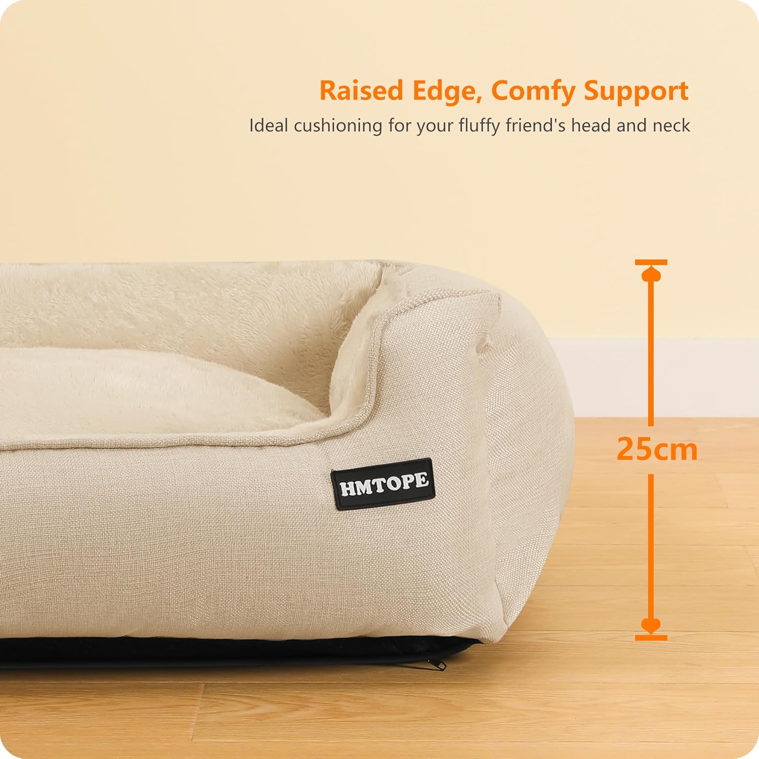 • 【ПОВДИГНАТ РЪБ】: Дизайнът с повдигнат ръб подобрява безопасността и комфорта за вашия домашен любимец, поддържа главата и врата му и му позволява да спи в по-удобна позиция.