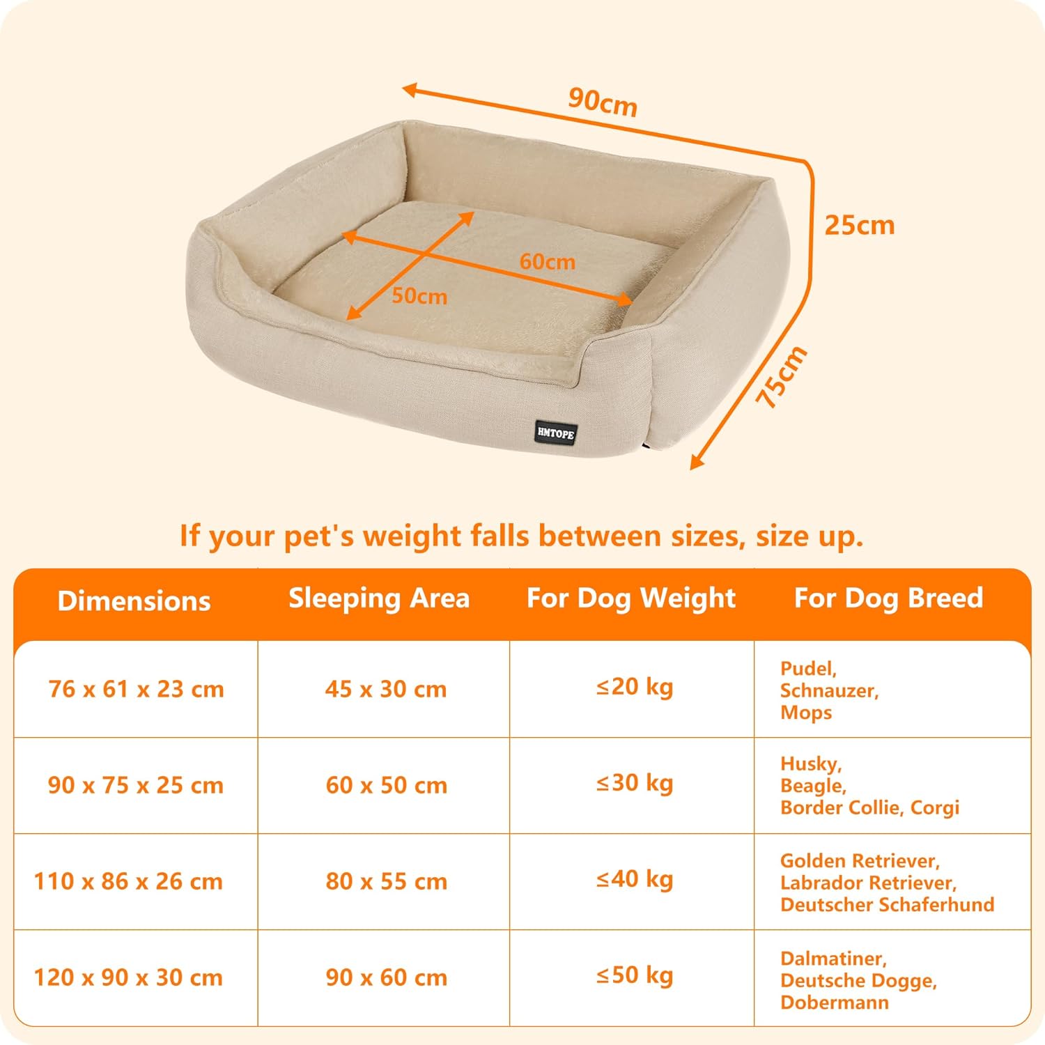 Легло за кучета, диван за кучета, възглавница за кучета, кошница за кучета, сваляема и може да се пере, бежово, 90 x 75 x 25 см