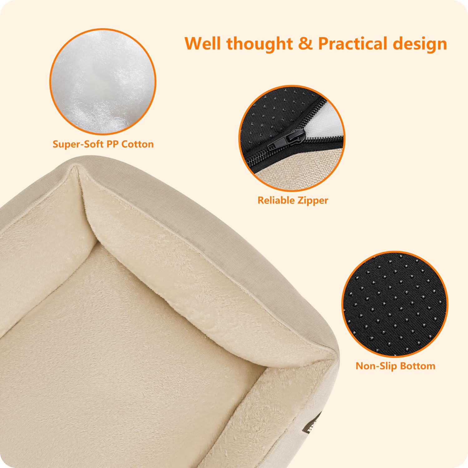 • 【Неплъзгащо се дъно】: противоплъзгащите точки на дъното са предназначени да поддържат леглото за кучета стабилно и да направят вашия домашен любимец по-безопасен.