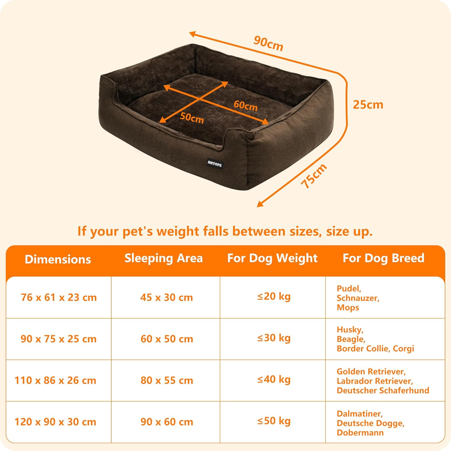 Легло за кучета, диван за кучета, възглавница за кучета, кошница за кучета, сваляема и може да се пере, кафява, 90 x 75 x 25 см