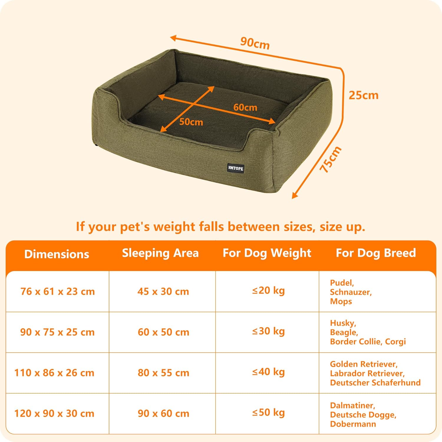 Легло за кучета, диван за кучета, възглавница за кучета, кошница за кучета, сваляема и переща се, маслинено зелено, 90 x 75 x 25 см