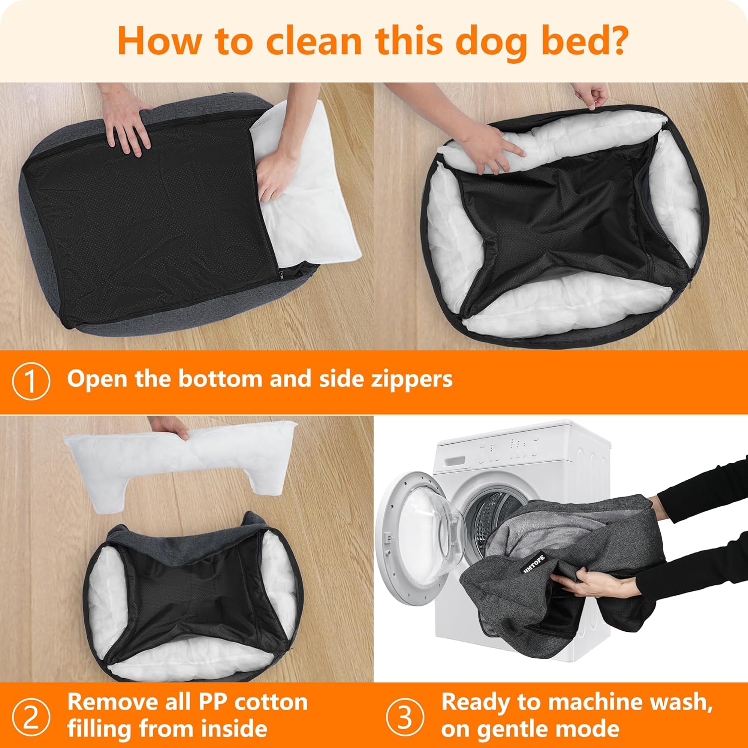 • 【Всичко е сваляемо и може да се пере】: отворете двата ципа, можете да извадите всички вътрешни пълнежи за няколко секунди, да изперете външния калъф в пералнята, за да го направите по-хигиеничен за вашите домашни любимци и да спестите време за почистване.