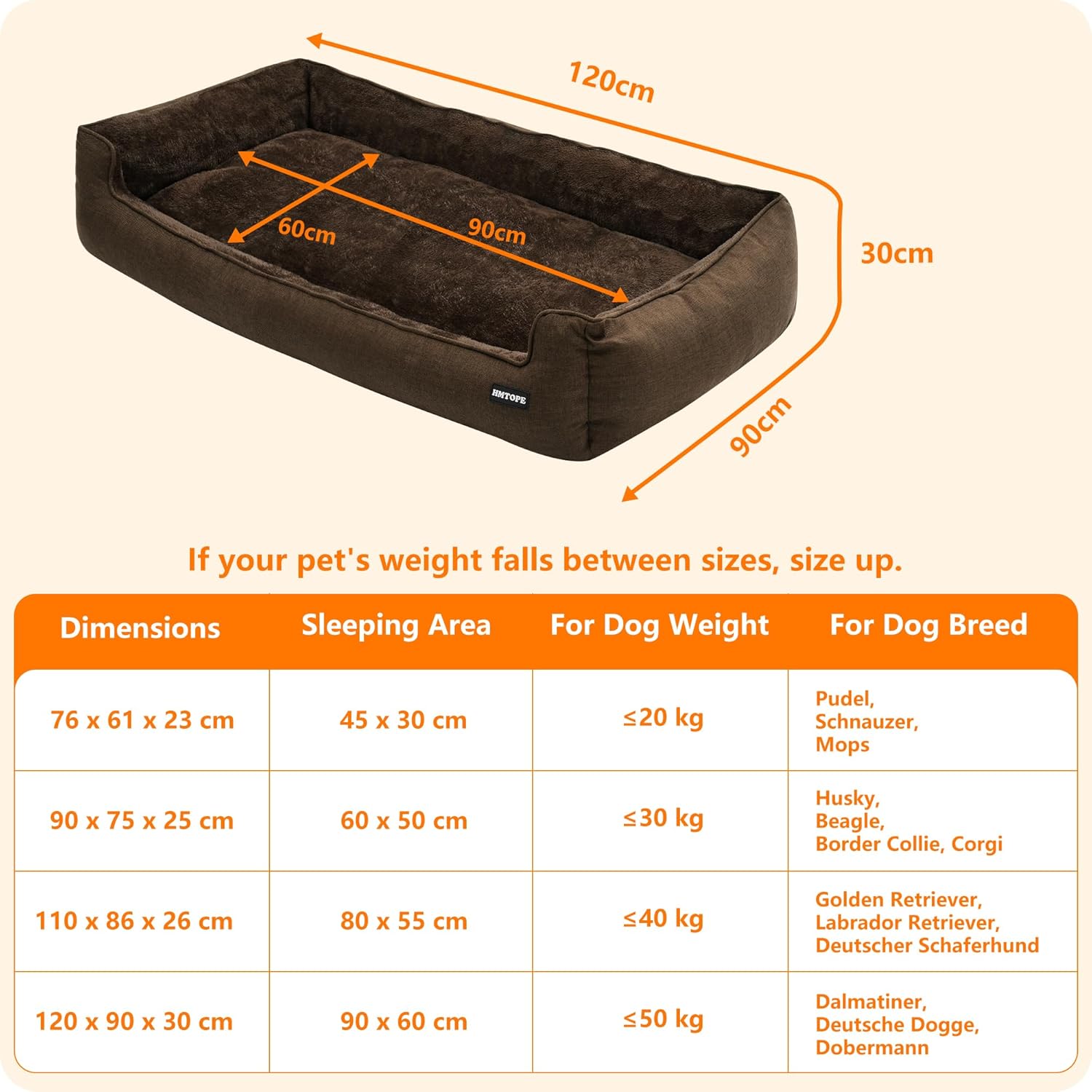 Легло за кучета, диван за кучета, възглавница за кучета, кошница за кучета, сваляемо и може да се пере, кафяво, 120 x 90 x 30 см
