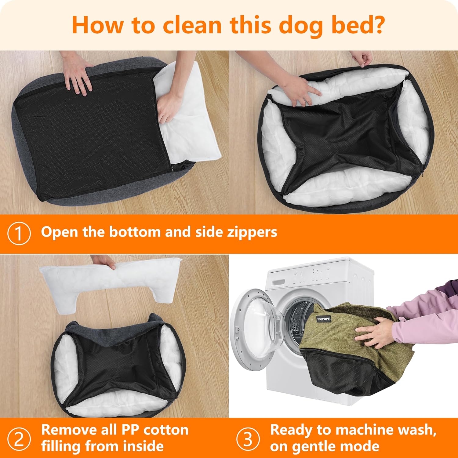 • 【Всичко е сваляемо и може да се пере】: отворете двата ципа, можете да извадите всички вътрешни пълнежи за няколко секунди, да изперете външния калъф в пералнята, за да го направите по-хигиеничен за вашите домашни любимци и да спестите време за почистване.