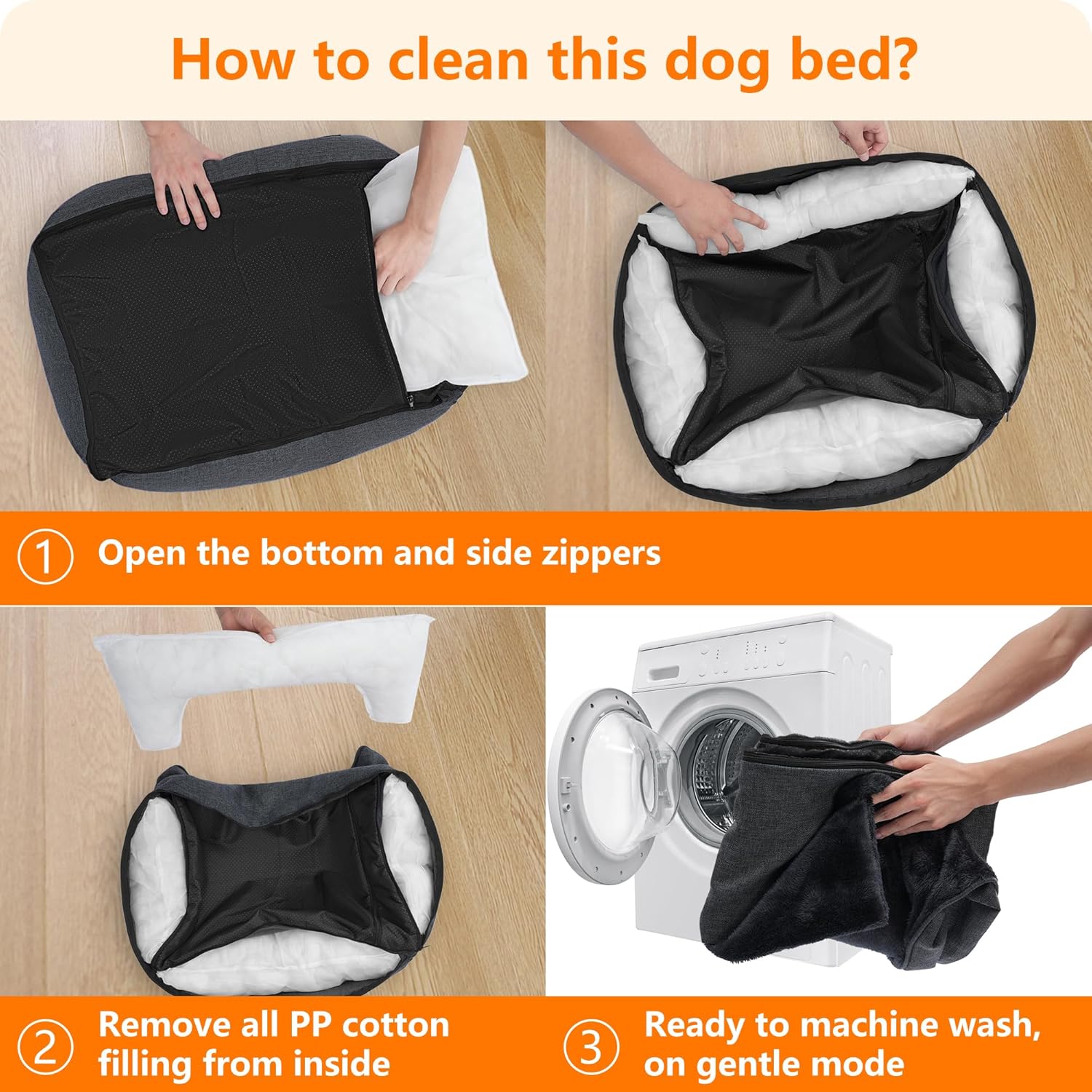 • 【Всичко е сваляемо и може да се пере】: отворете двата ципа, можете да извадите всички вътрешни пълнежи за няколко секунди, да изперете външния калъф в пералнята, за да го направите по-хигиеничен за вашите домашни любимци и да спестите време за почистване.