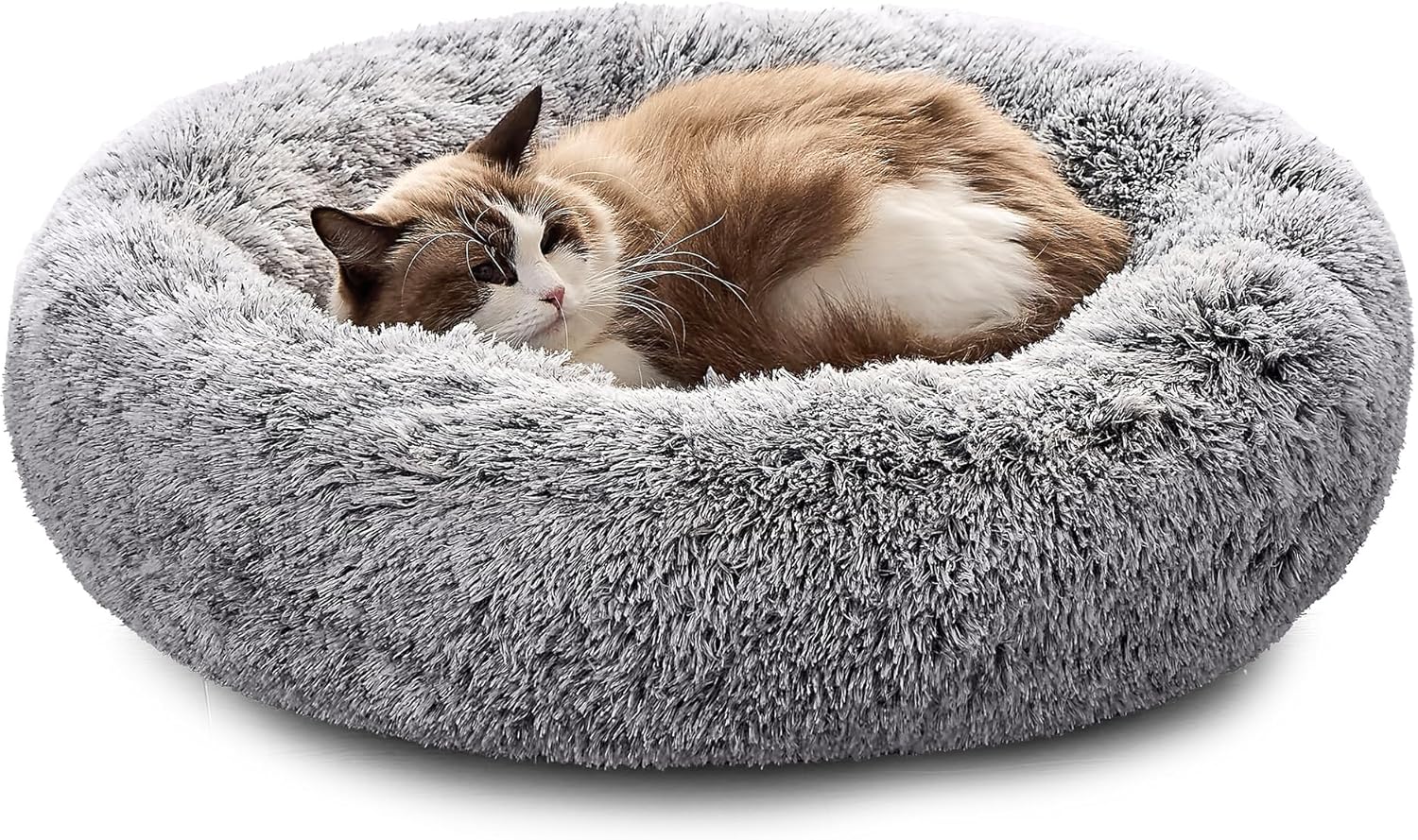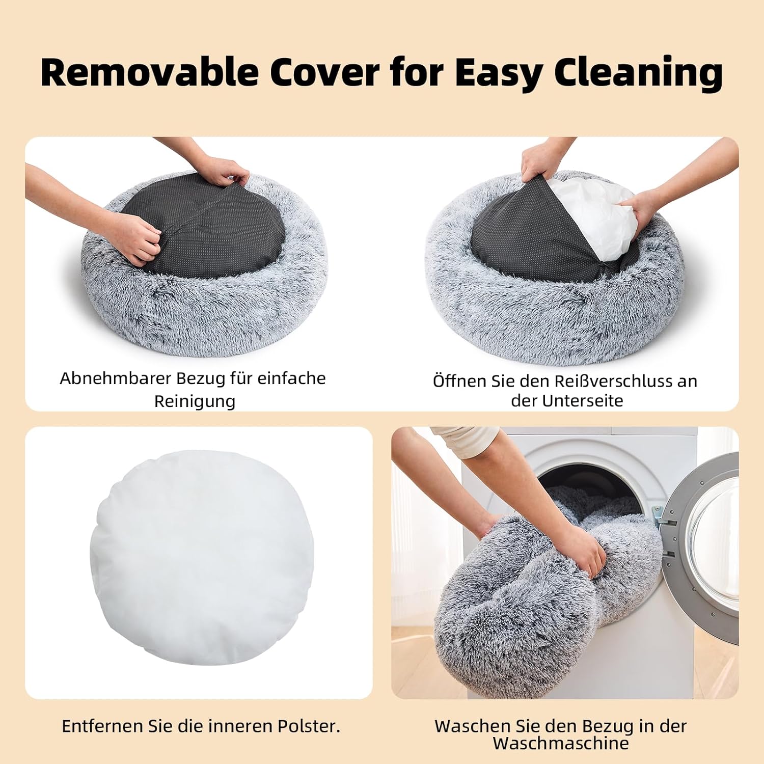 Легло за кучета и котки 60 см, перащо се, пухкаво ортопедично легло за кучета за големи и малки кучета, място за спане на котки, поничка (сиво 60 см)