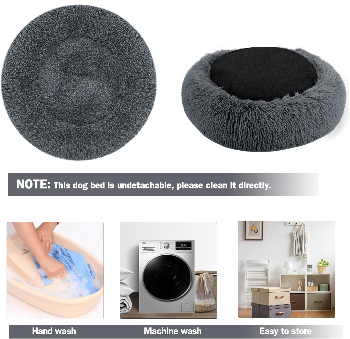 Легло за кучета, легло за котки, пухкаво кръгло плюшено - Donut пухкава възглавничка за кучета, кошница за кучета, пераща се, размери S/M/L/XL/XXL за малки, средни и големи кучета, котки и други домашни любимци (L-60 см, тъмносиво)