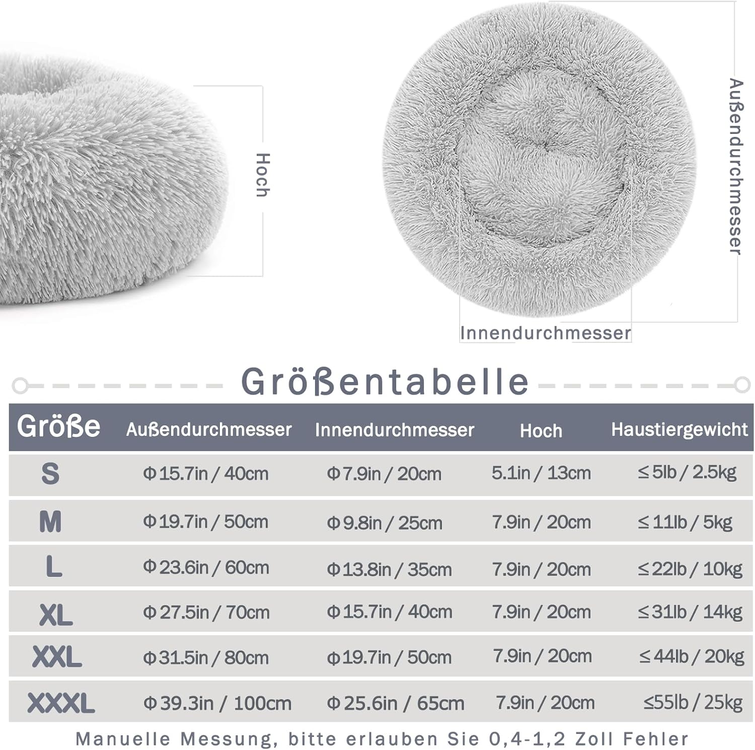• Комфорт и опора: Леглото за кучета е с дизайн във формата на поничка и създава меко и топло легло за спане на котки или кучета. Повдигнатият ръб осигурява опора за главата и врата, чудесно е за домашни любимци, които обичат да се свиват или разтягат. (не е подходящо за домашни любимци с дъвчащо поведение).