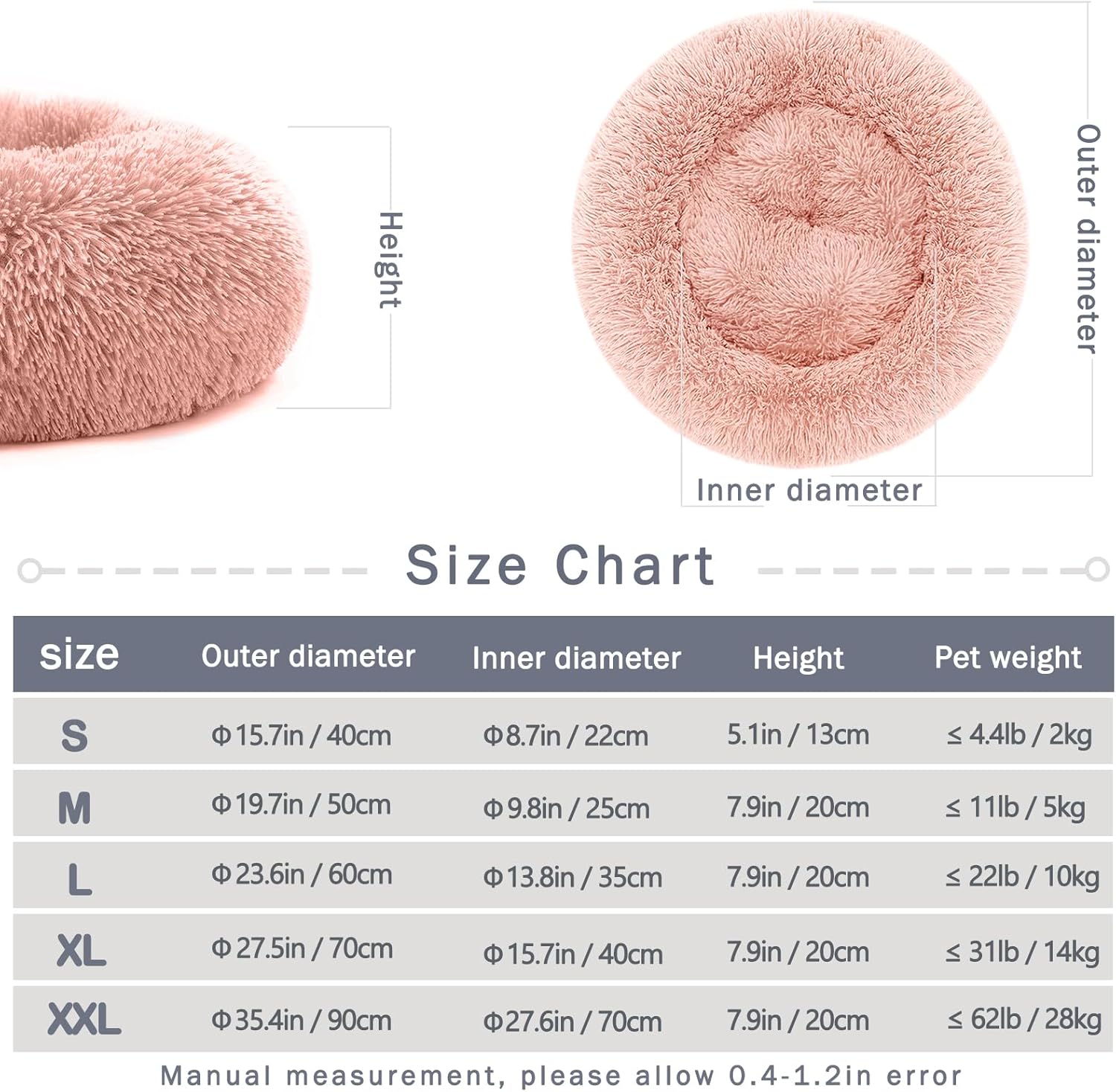• Предложения за размер: Препоръчваме легло за кучета размер M (50 см) за малки кучета и котки до 5 кг/11 фунта, легло L (60 см) за тегло до 10 кг/22 фунта. Легло XL (70 см) за тегло до 13,6 кг/30 фунта. Моля, купувайте според действителното тегло и размер на вашия домашен любимец.