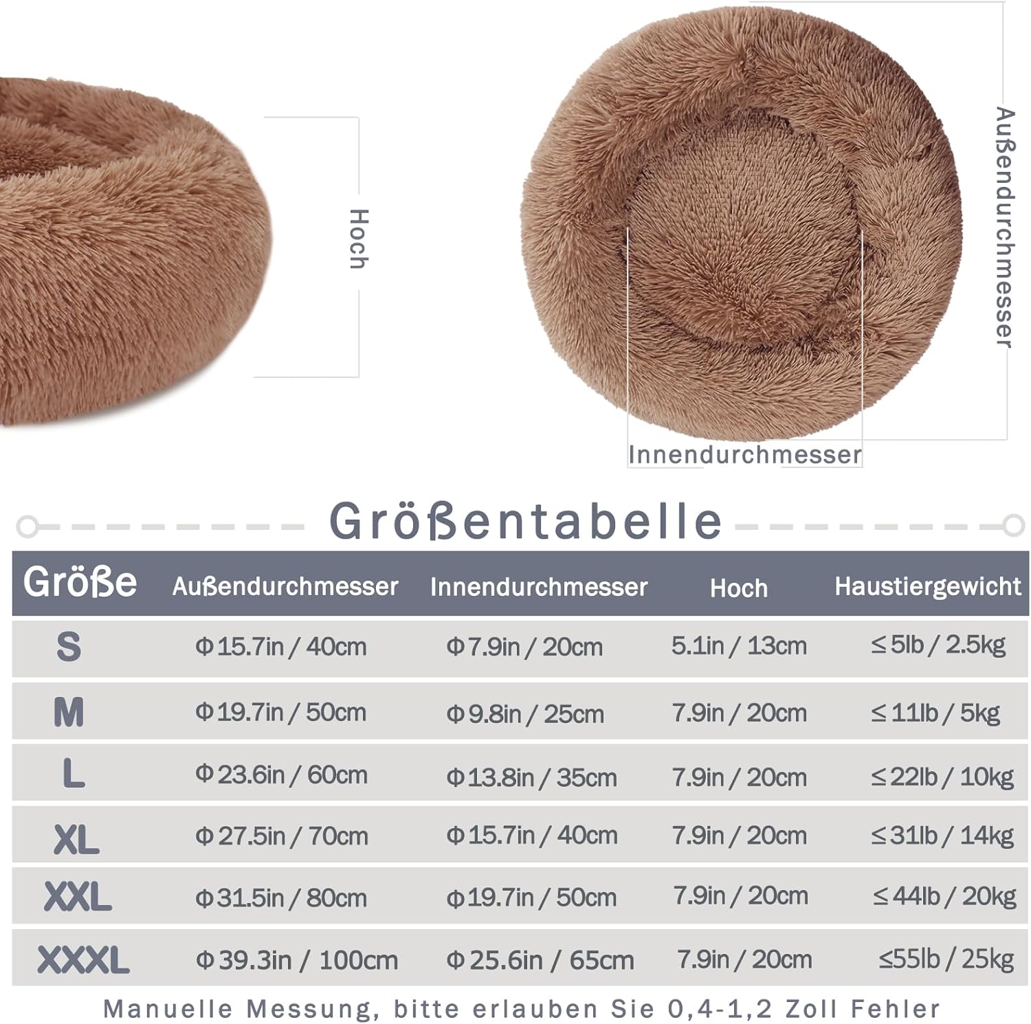 • Комфорт и опора: Леглото за кучета е с дизайн във формата на поничка и създава меко и топло легло за спане на котки или кучета. Повдигнатият ръб осигурява опора за главата и врата, чудесно е за домашни любимци, които обичат да се свиват или разтягат. (не е подходящо за домашни любимци с дъвчащо поведение).