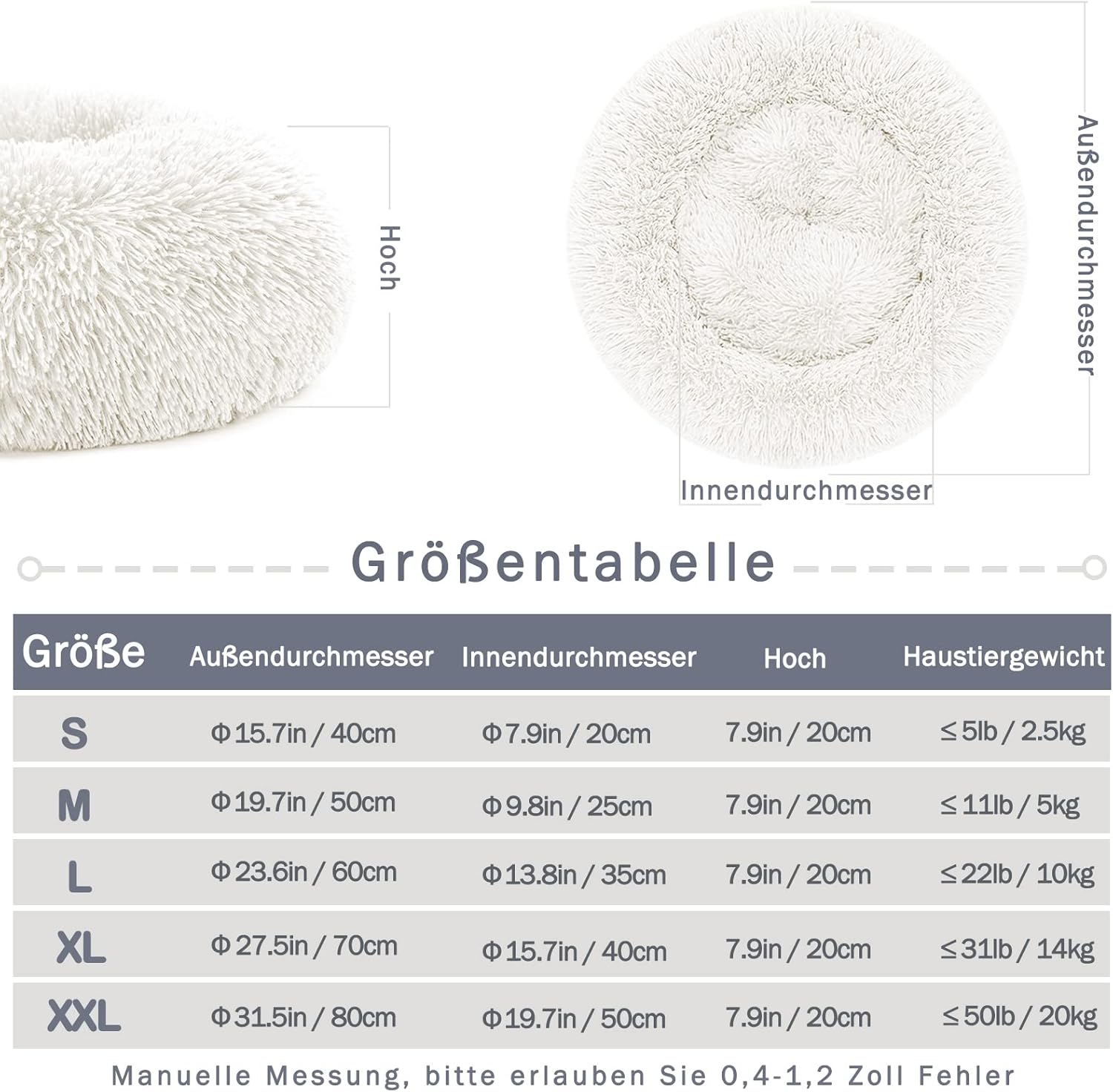 Легло за кучета, легло за котки, пухкаво кръгло плюшено поничка, възглавничка за кучета, кошница за кучета, пераща се, размери S/M/L/XL/XXL за малки, средни и големи кучета, котки и други домашни любимци (S-40 см, бежово)