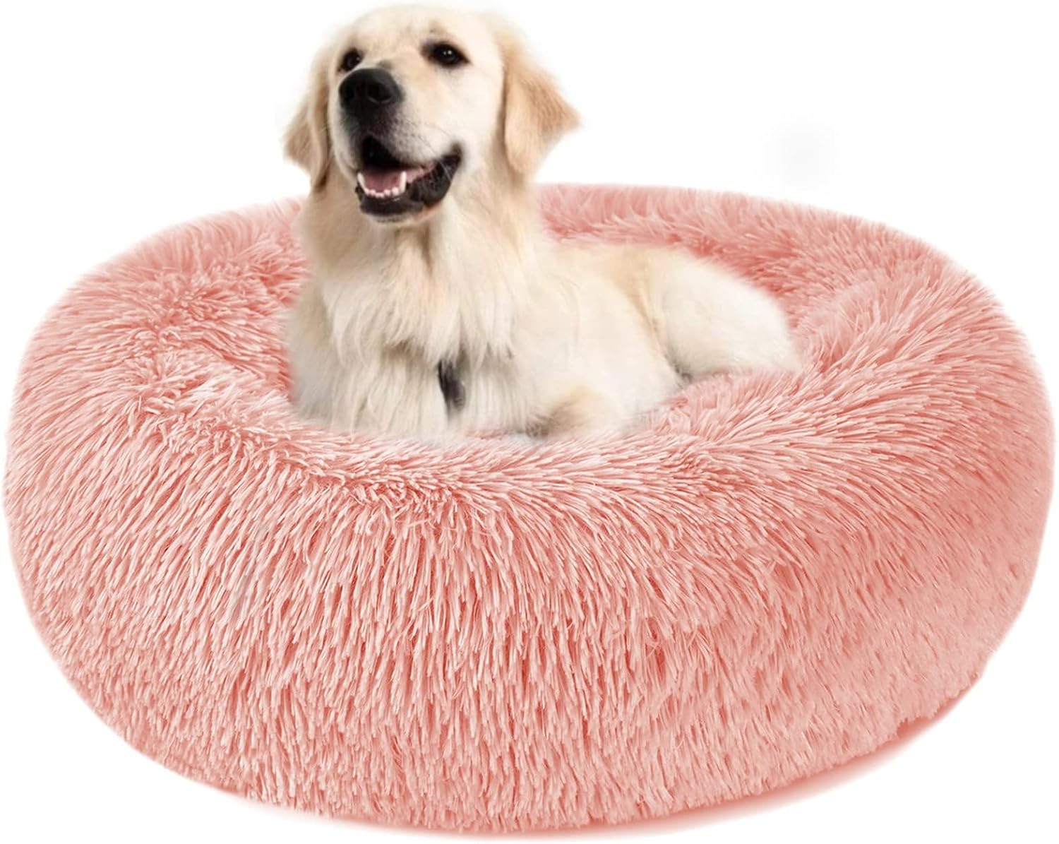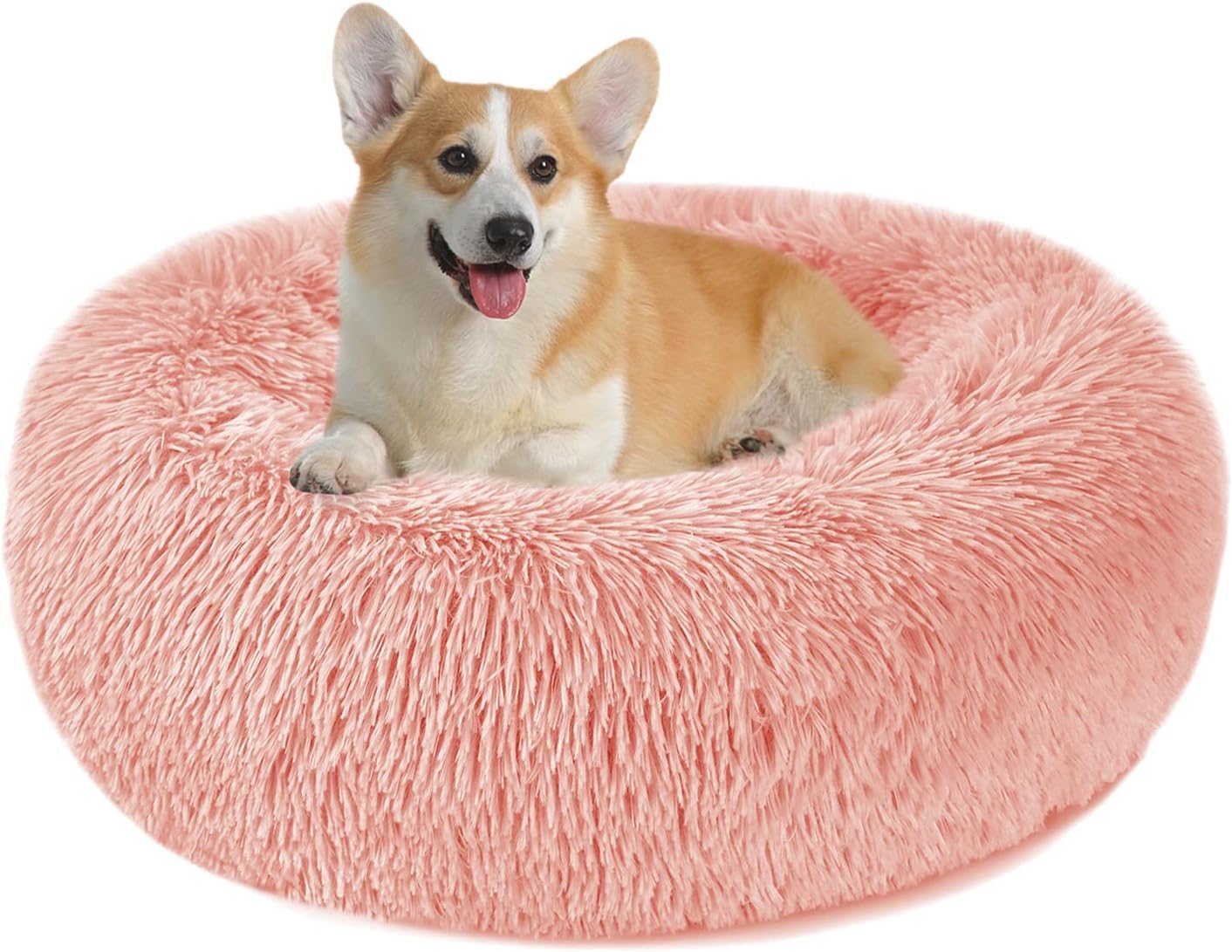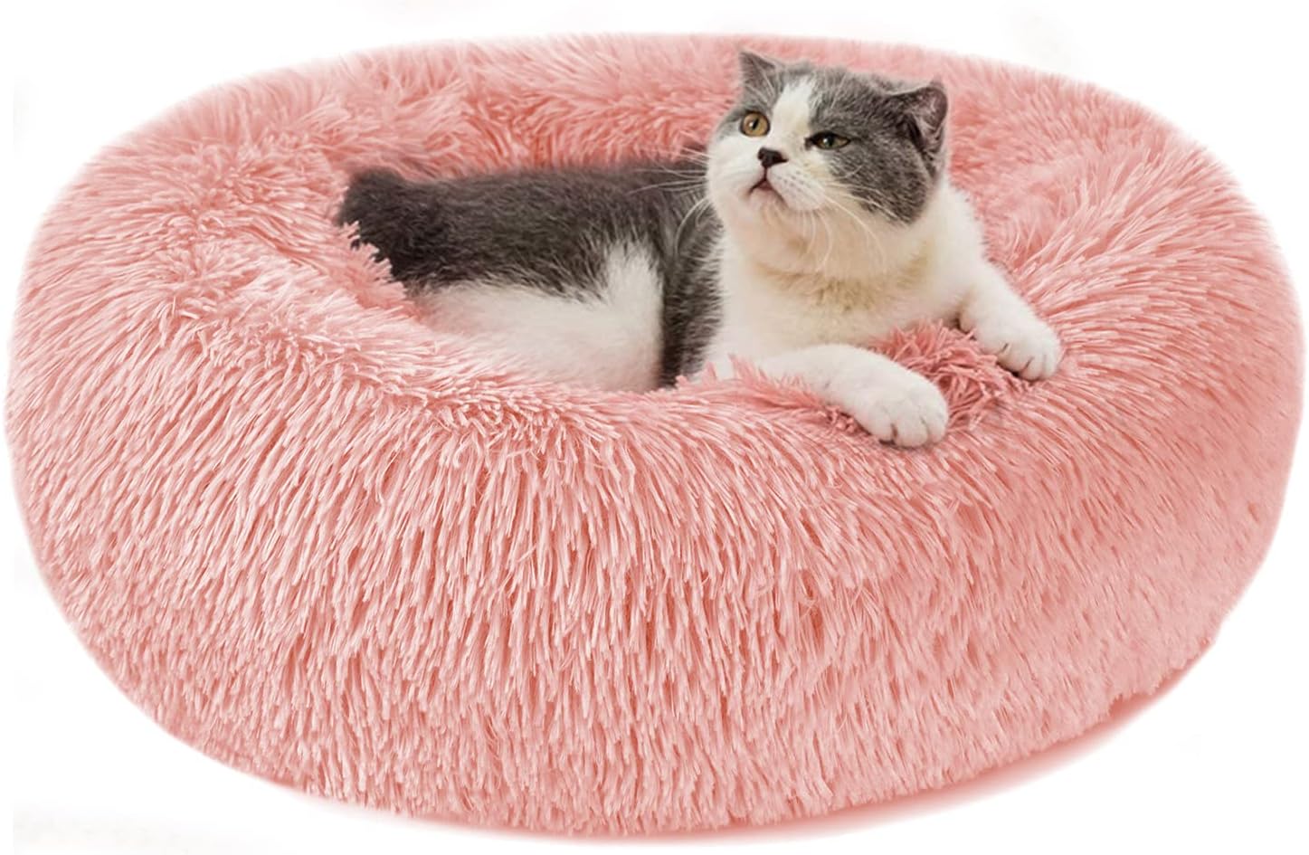 Легло за кучета, легло за котки, пухкаво кръгло плюшено поничка, възглавничка за кучета, кошница за кучета, пераща се, размери S/M/L/XL/XXL за малки, средни и големи кучета, котки и други домашни любимци (XL-70 см, розово)