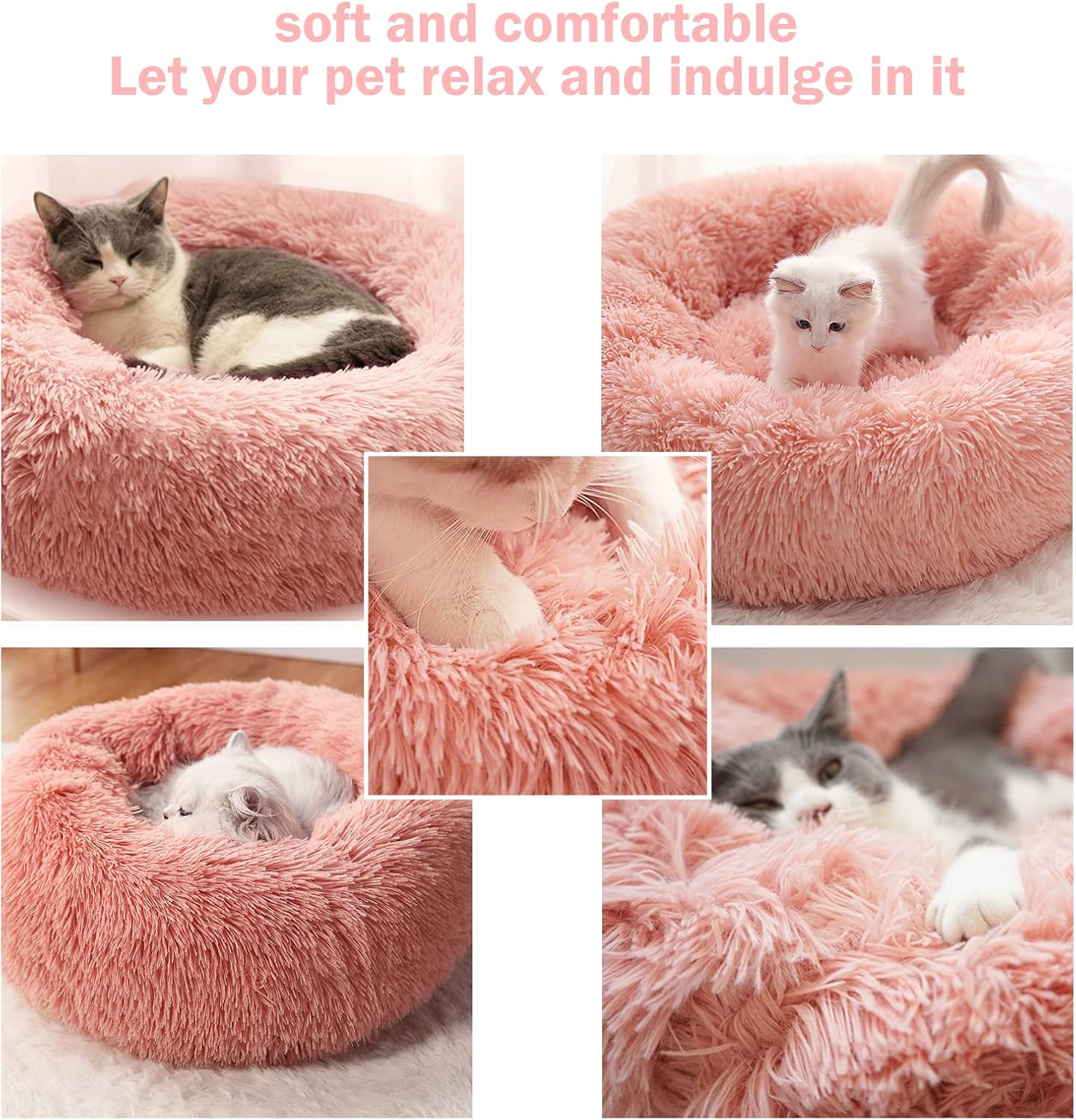 • Комфорт и опора: Леглото за кучета е с дизайн във формата на поничка и създава меко и топло легло за спане на котки или кучета. Повдигнатият ръб осигурява опора за главата и врата, чудесно е за домашни любимци, които обичат да се свиват или разтягат. (не е подходящо за домашни любимци с дъвчащо поведение).