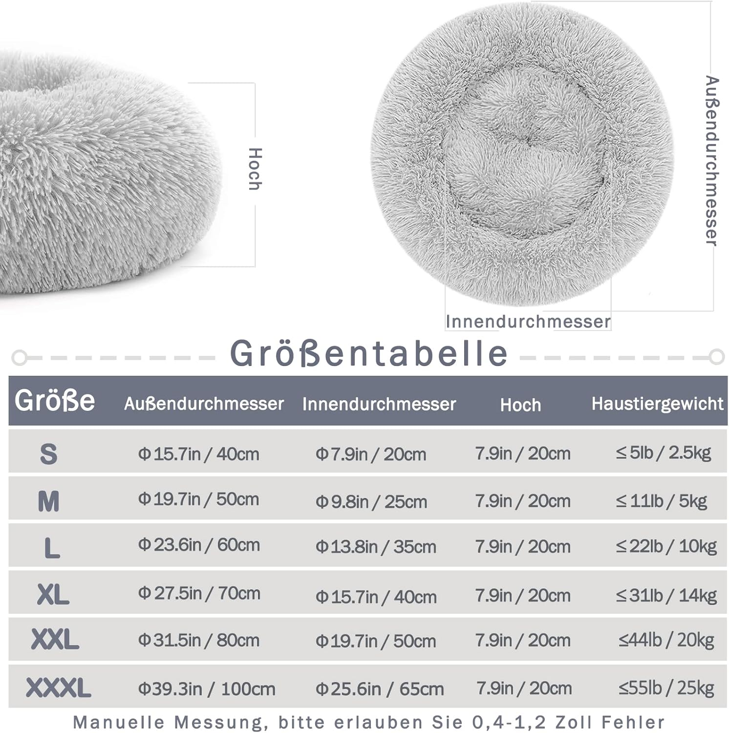 • Комфорт и опора: Леглото за кучета е с дизайн във формата на поничка и създава меко и топло легло за спане на котки или кучета. Повдигнатият ръб осигурява опора за главата и врата, чудесно е за домашни любимци, които обичат да се свиват или разтягат. (не е подходящо за домашни любимци с дъвчащо поведение).