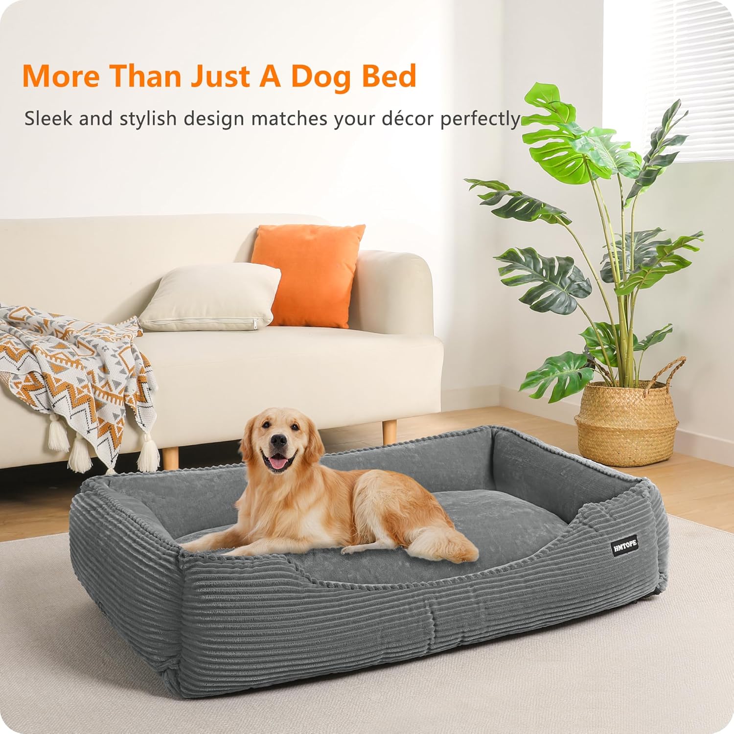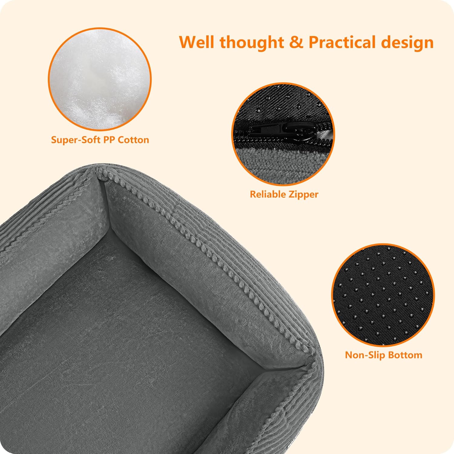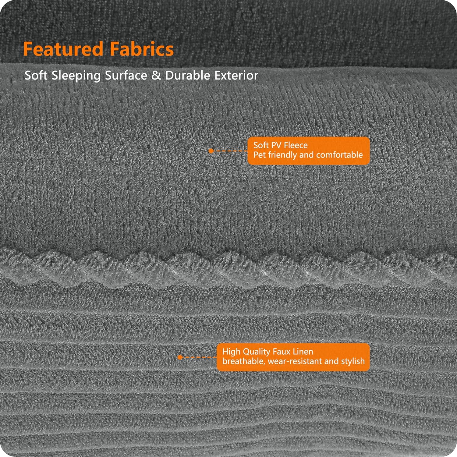 • Мека, приятна на допир материя от кадифе: Нашите легла за кучета са изработени от нежна за кожата кадифе, която е мека като облак и осигурява на вашия пухкав приятел максимален комфорт при сън. Фината оребрена материя е топла, дишаща и изключително издръжлива. Освен това материалът почти не линее и е лесен за почистване - за чиста и безгрижна среда, в която вашият домашен любимец се чувства напълно комфортно.