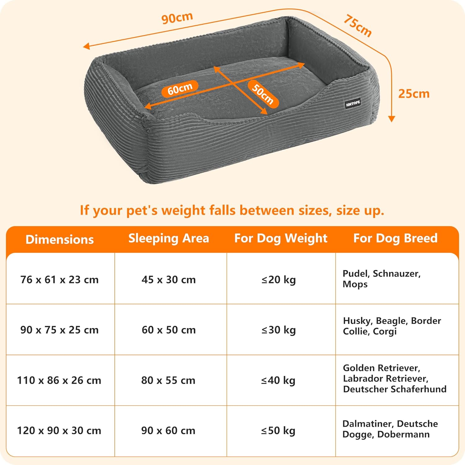 • Разнообразие от размери, от които да избирате: Това легло за кучета се предлага в разумни размери от 76 см, 90 см, 110 см и 120 см, за да отговори на нуждите на кучета с всякаква височина. Важна забележка при първоначална употреба на леглото: След разопаковане, моля, разтърсете леко леглото и го оставете за 24 часа. След това пълнежът се разгъва напълно и постига оптимално, пухкаво и поддържащо комфортно състояние.