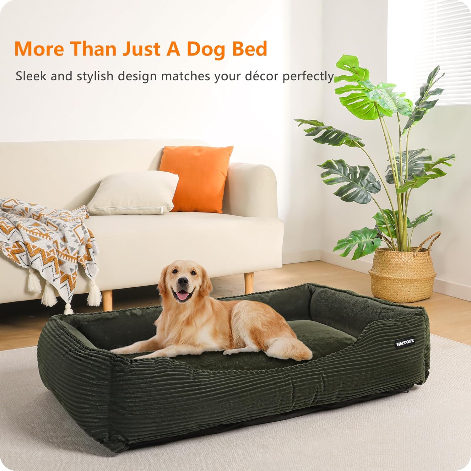 Легло за кучета, Ортопедичен диван за кучета, Кадифена постелка за кучета, S/M/L, Неплъзгащо се, Свалящо се и може да се пере, Меко и дишащо, Маслинено зелено, 110 x 85 x 27 см