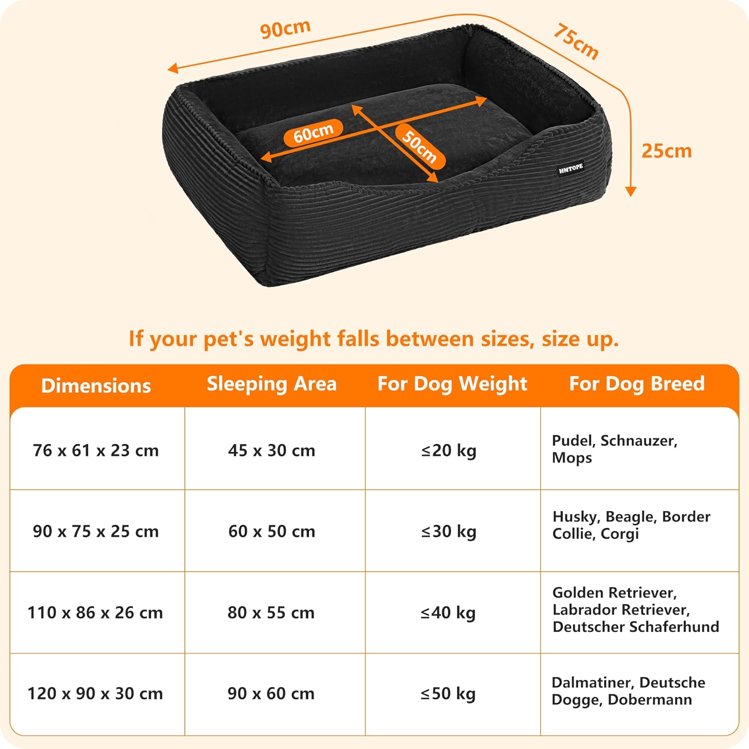 • Мека, приятна на допир материя от кадифе: Нашите легла за кучета са изработени от нежна за кожата кадифе, която е мека като облак и осигурява на вашия пухкав приятел максимален комфорт при сън. Фината оребрена материя е топла, дишаща и изключително издръжлива. Освен това материалът почти не линее и е лесен за почистване - за чиста и безгрижна среда, в която вашият домашен любимец се чувства напълно комфортно.