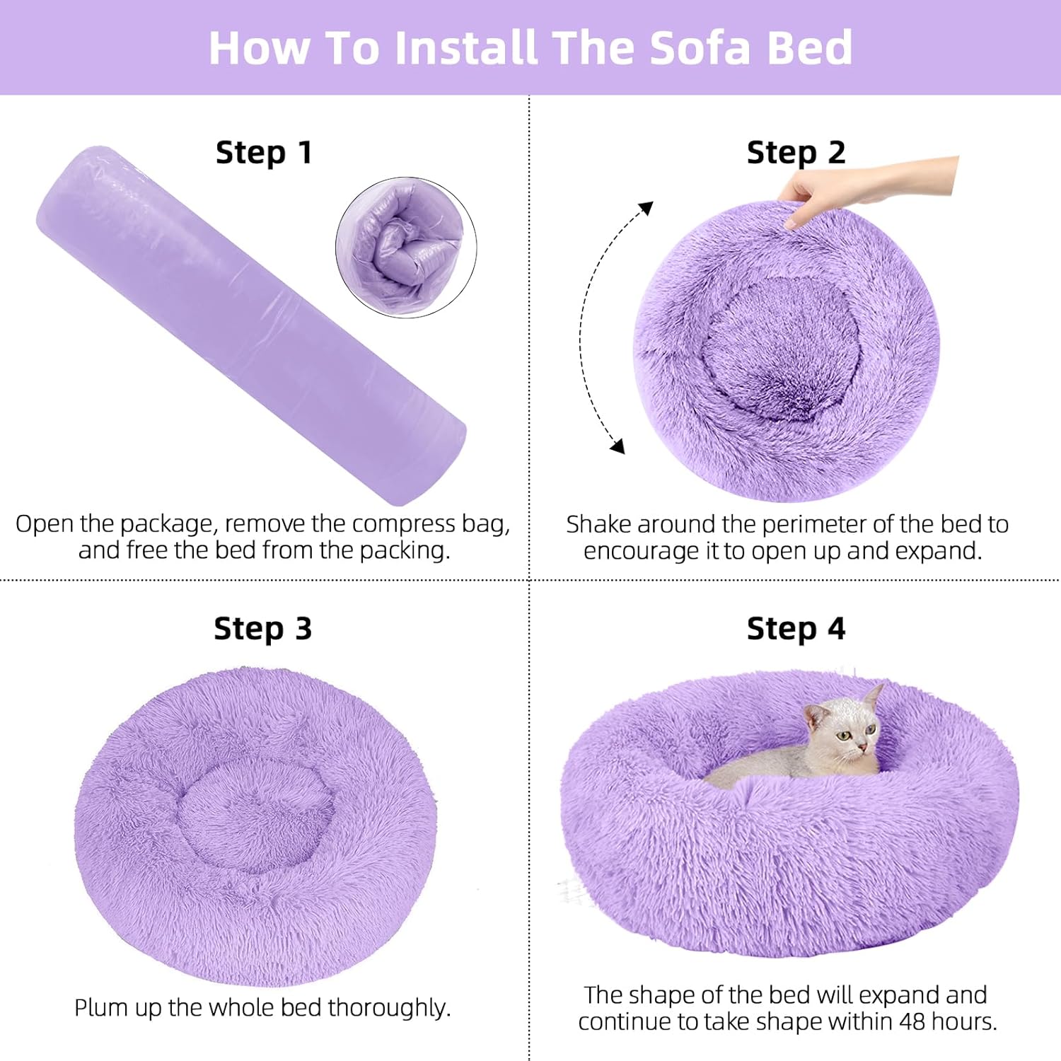 When you open the packaging of the pet bed, you will find that it has been compressed, it does not match the picture. But don't worry. Simply wash the pet bed by hand or wash it with a washing machine, and then dry it to restore its full shape as shown in the picture (it can be dried with a dryer or natural sunlight), shake it and leave it for 1-2 days as it is made of soft polyester filling with plenty of padding that makes the dog or cat bed fluffier.