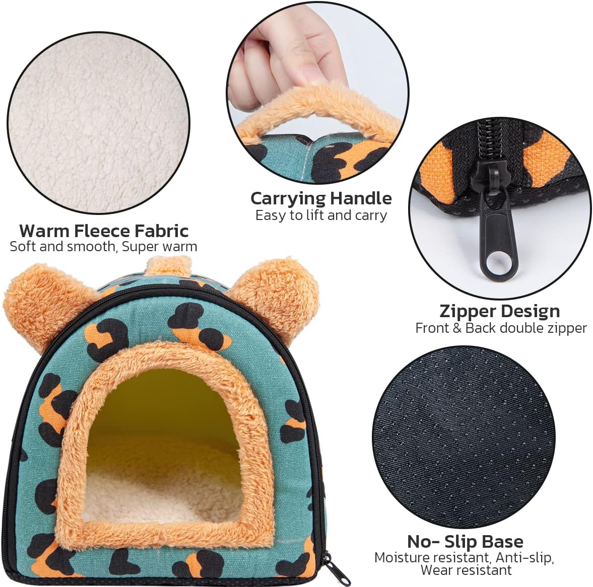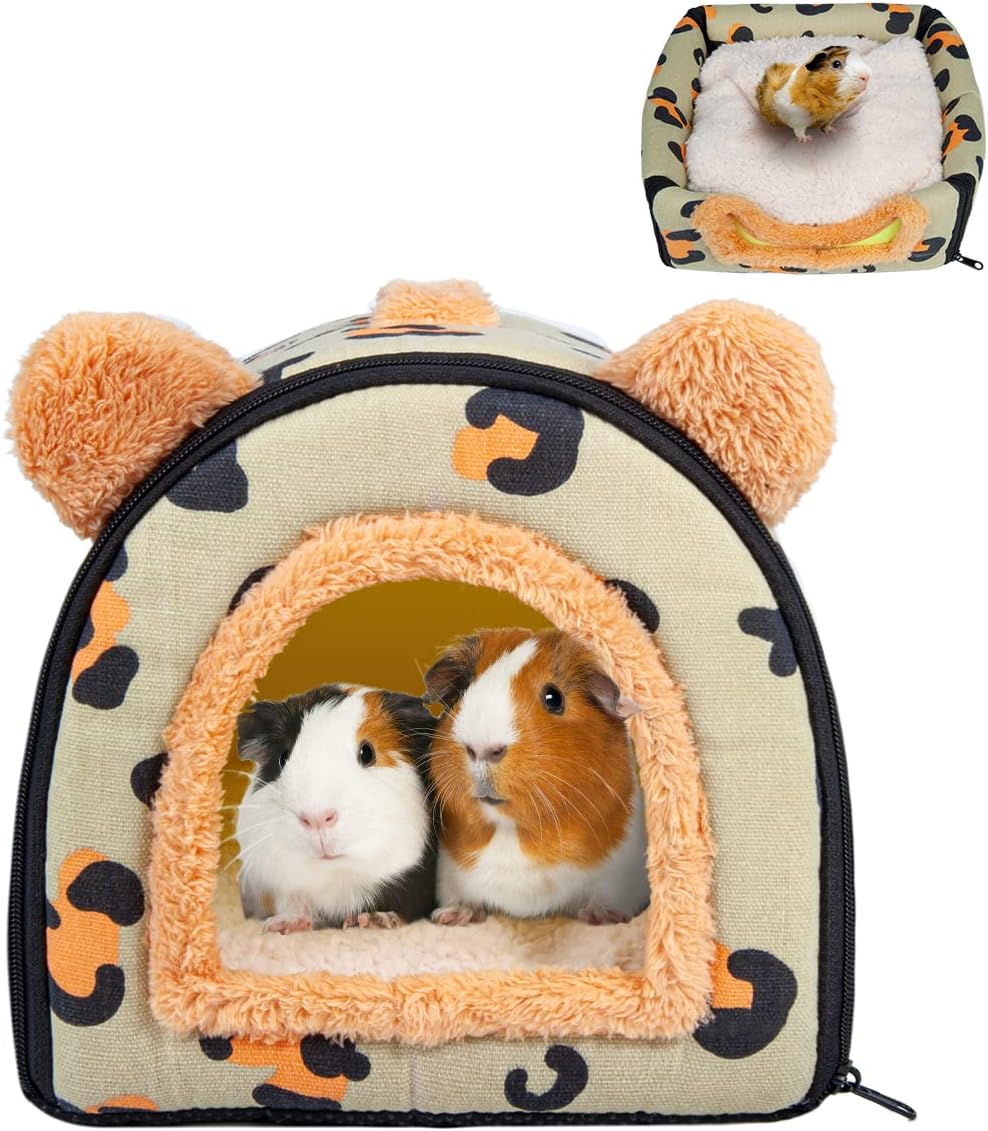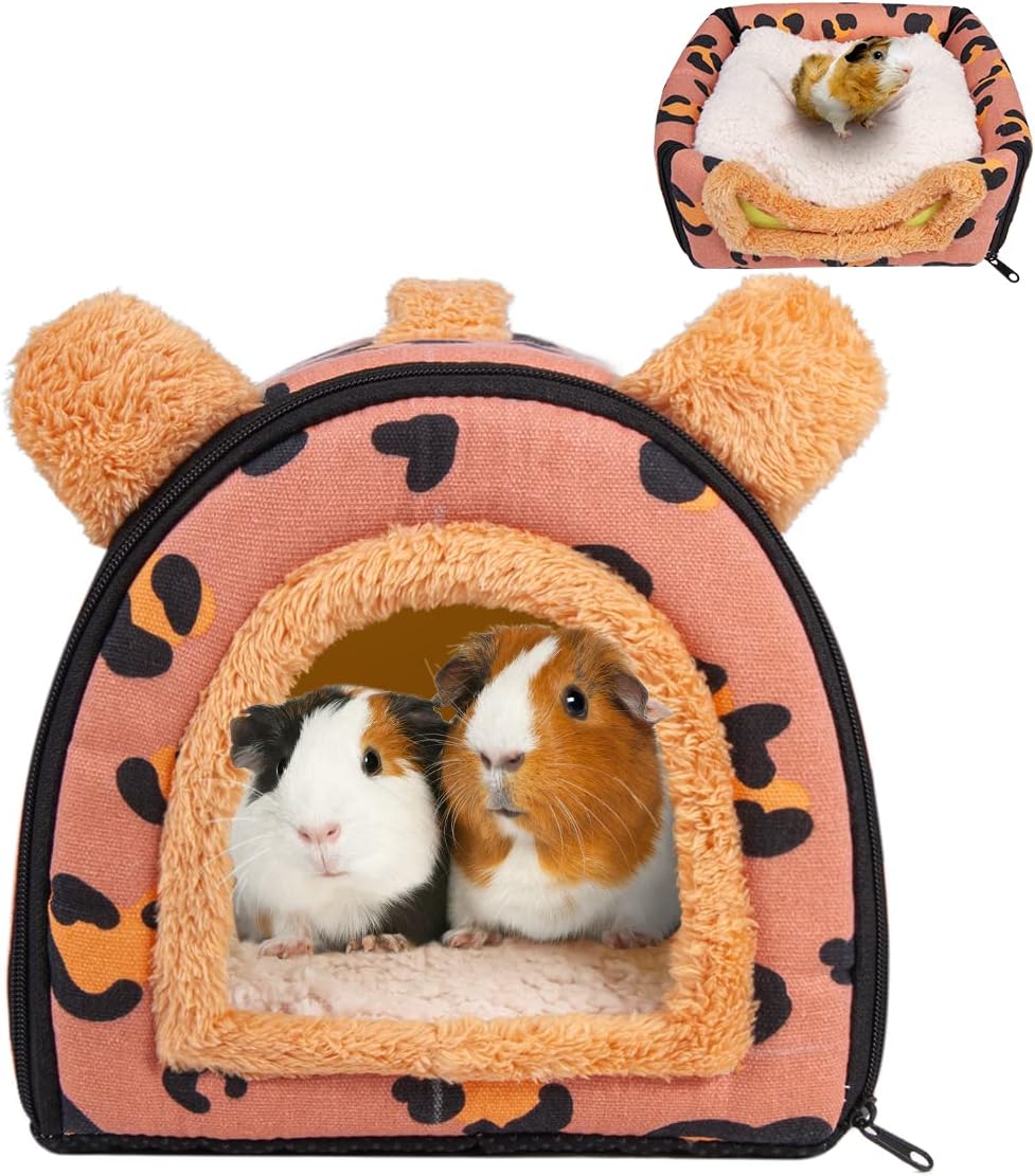 Преносима пещера за морско свинче: Може да се използва като уютна пещера или легло. Сгъваемо легло за морско свинче: Можете да притиснете покрива му като постелка за удобно гушкане. Включваме мека постелка, за да поддържате домашния си любимец топъл и удобен, подходяща за целия сезон; къщичка през зимата, постелка през лятото.