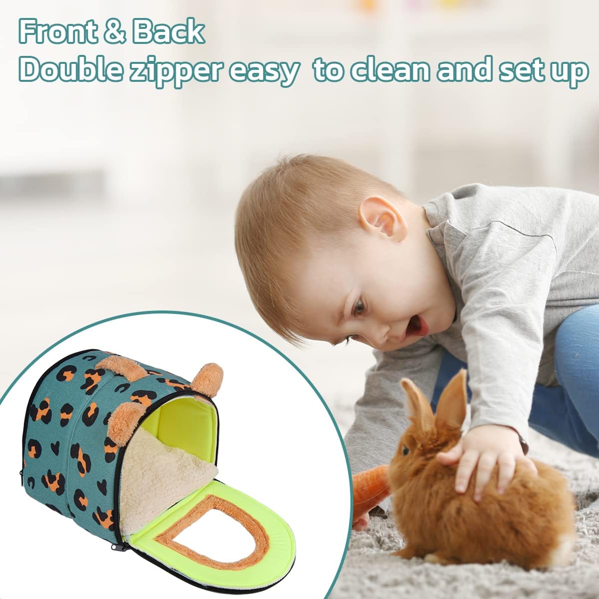 Висококачественият дизайн с цип е издръжлив. Уникалният дизайн на ципа позволява клетката за морски свинчета да се отваря или затваря за игра или дрямка.