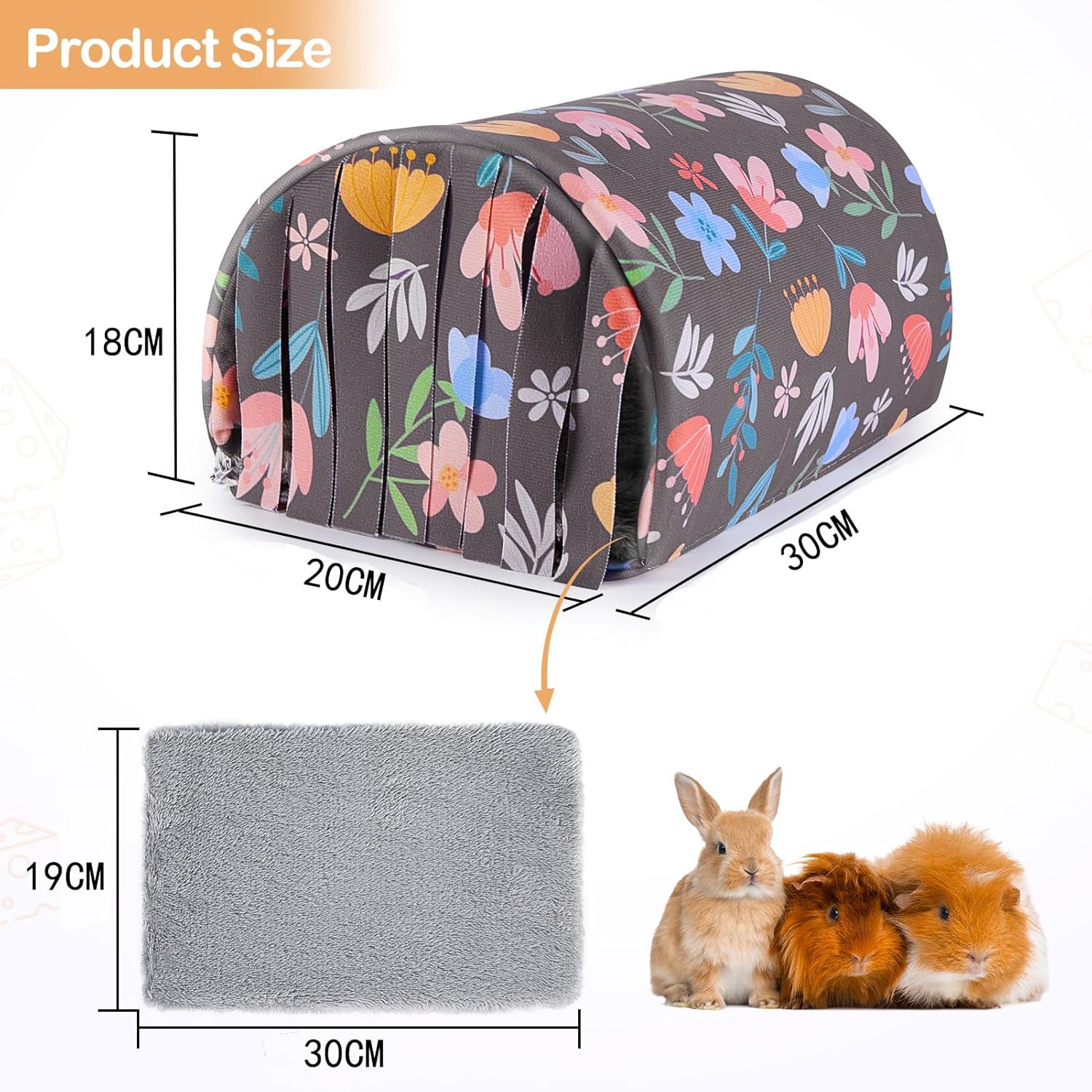 • Удобна материя: изработена от имитация на мека материя с еластичен гъбен пълнеж и мека постелка, тази тунелна тъкан е топла и удобна, което я прави идеално място за игра и почивка на малки животни.