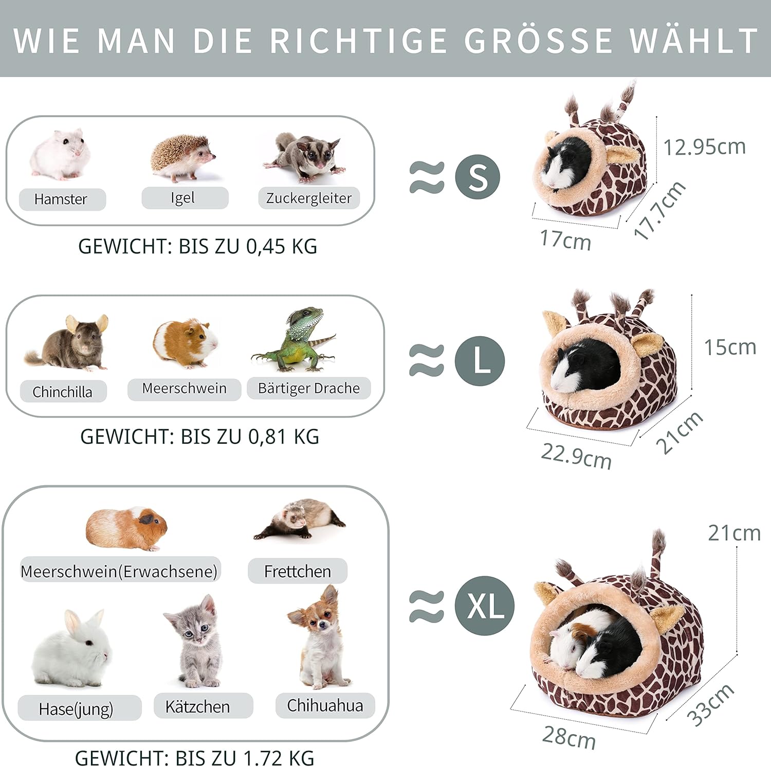 • Подходяща - Малката къщичка за чинчили е подходяща само за животни с тегло под 0,5 кг, голямата е подходяща за животни с тегло 0,5 - 0,8 кг. Голямата е подходяща за животни над 1 кг. Моля, изберете подходящия размер за вашия прекрасен домашен любимец, перфектен подарък за рожден ден на дете.