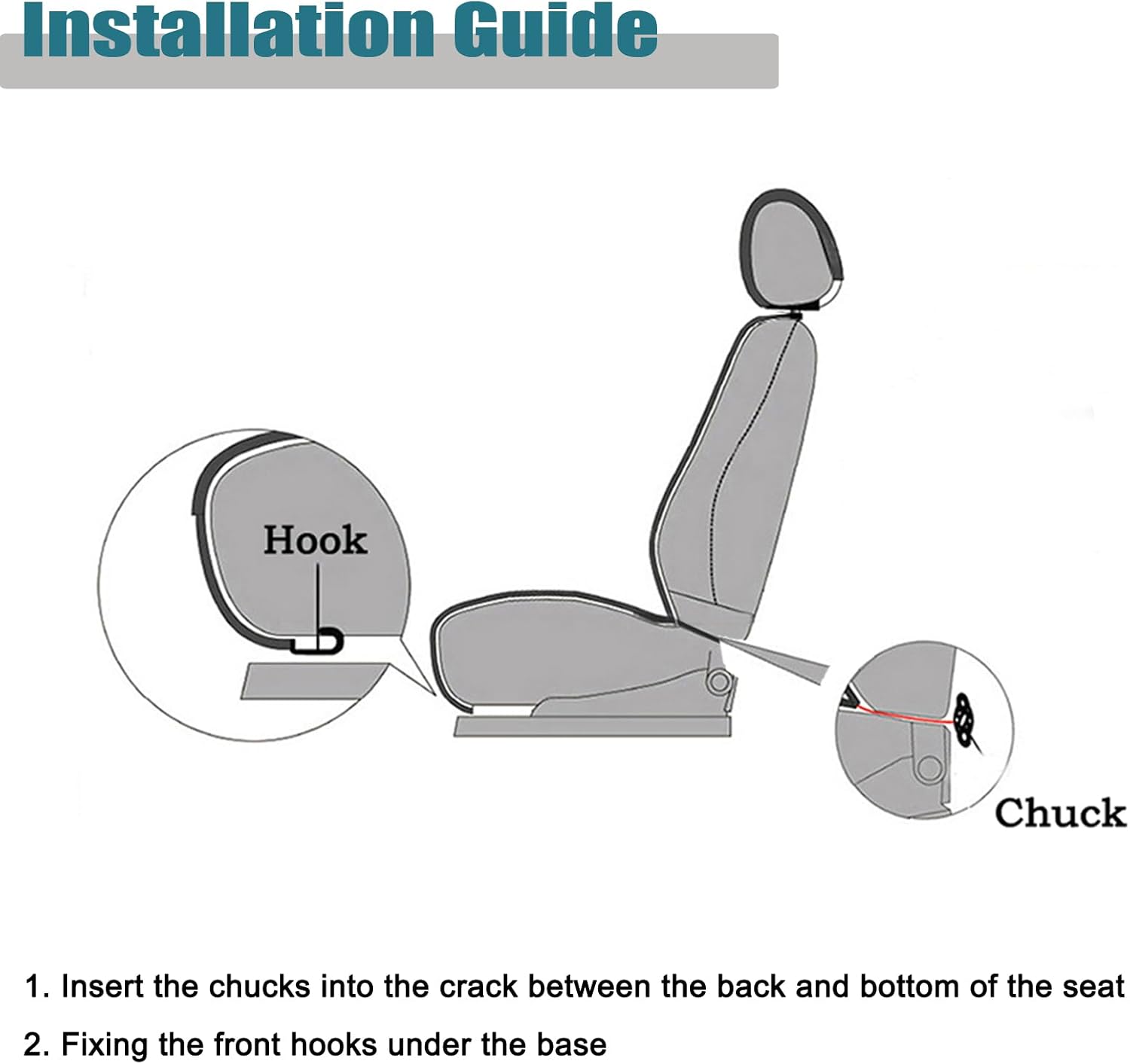 • Лесен монтаж: Този калъф за автомобилна седалка е лесен за монтаж. Просто поставете скобите за опъване в процепа между облегалката и долната част на седалката и прикрепете предните куки под основата. Готово е за 5 минути.