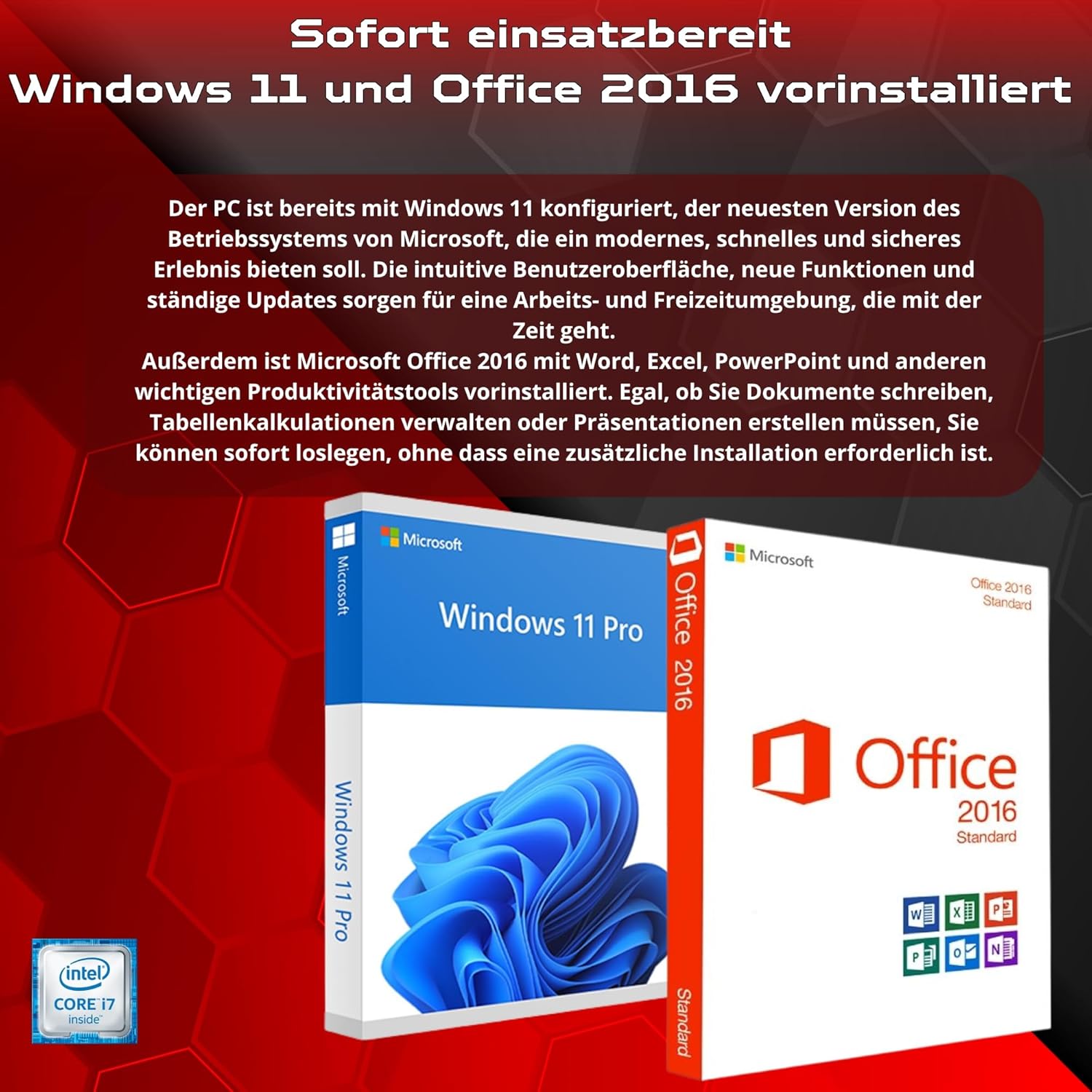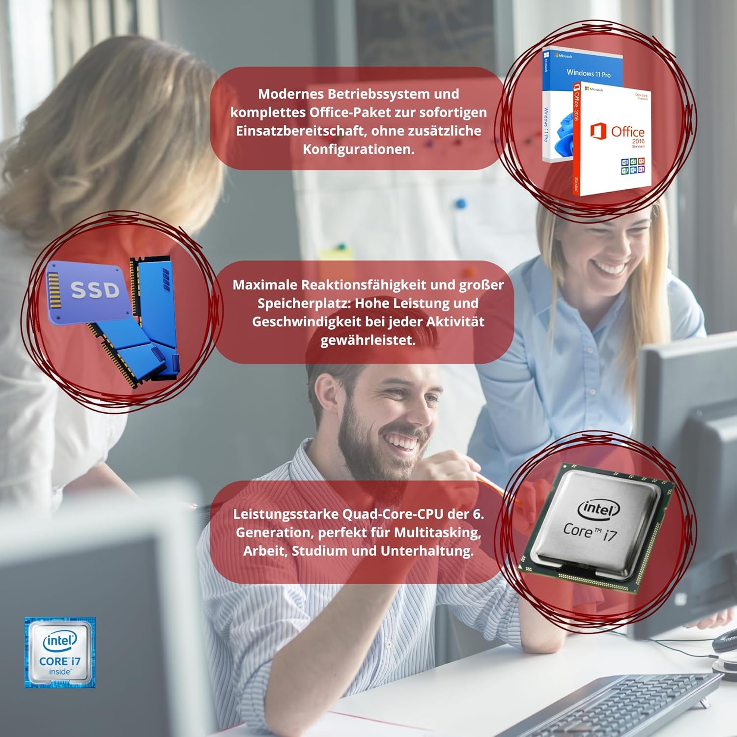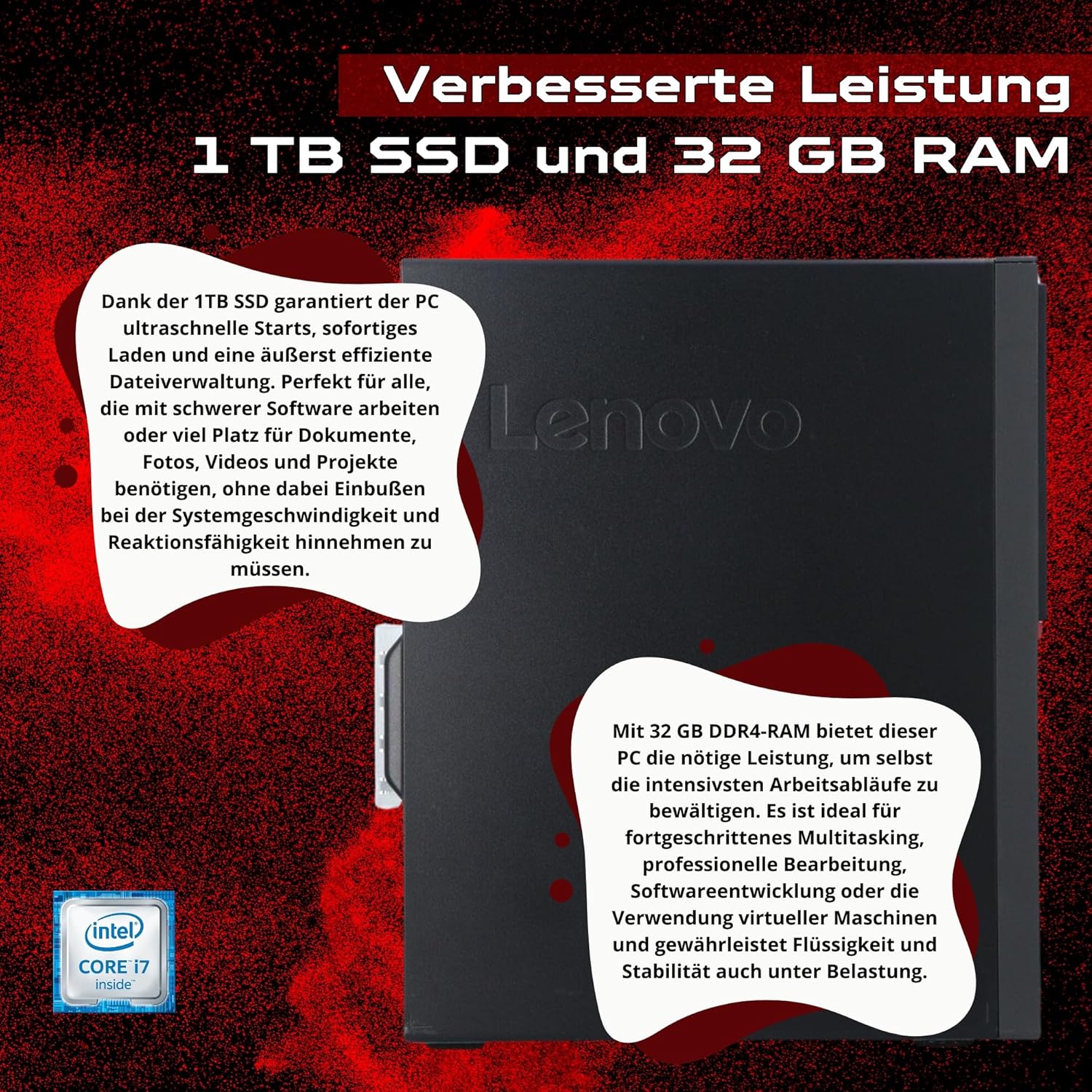 Lenovo - Бърз компютър с Intel Core i7 6700 - Настолен компютър + Безшумен компютър за офис и домашен офис с 4 GHZ - 32 GB - 1000 GB SSD - USB 3.0 - WLAN - включително Windows 11 Pro и Office 2016