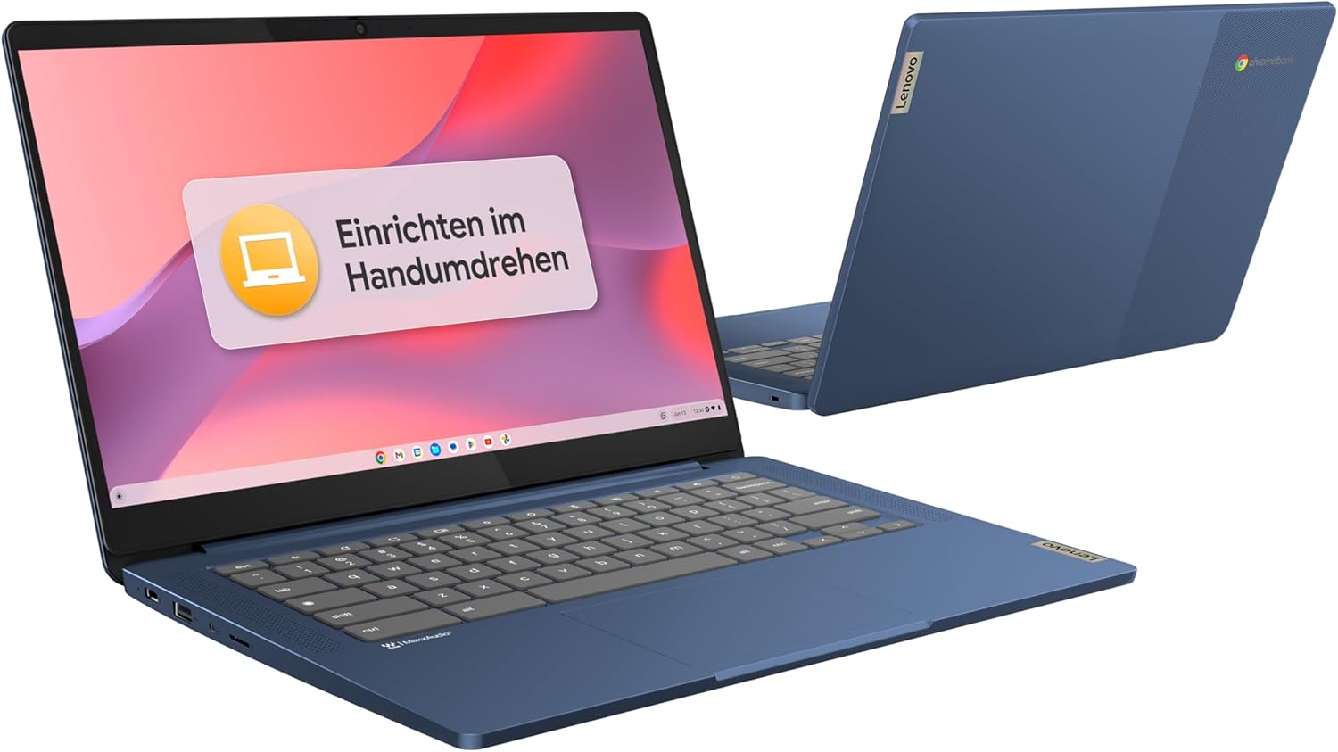 Lenovo Chromebook IdeaPad Slim 3 | 14" Full HD дисплей | Mediatek MT8186 | 4GB RAM | 64GB SSD | ARM Mali-G52 графика | Chrome OS | QWERTZ | син