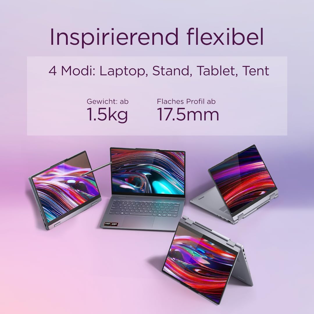 Lenovo IdeaPad 5 2-в-1 AI лаптоп, Copilot+ компютър, 14-инчов WUXGA сензорен дисплей, AMD Ryzen AI 5 340, 16GB RAM, 512GB SSD, AMD Radeon Graphics, Win11, QWERTZ клавиатура, Luna Grey, 3 месеца Premium Care