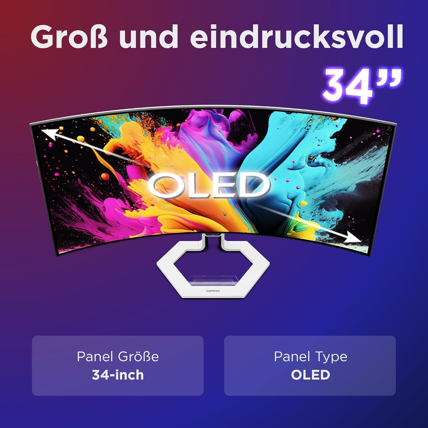 Lenovo Legion Pro 34wd-10 | 34-инчов WQHD геймърски монитор | 3440x1440 | 240Hz | Време за реакция 0.03ms | OLED панел | USB-C | HDMI | DisplayPort | AMD FreeSync Premium Pro | Вграден високоговорител | Черен