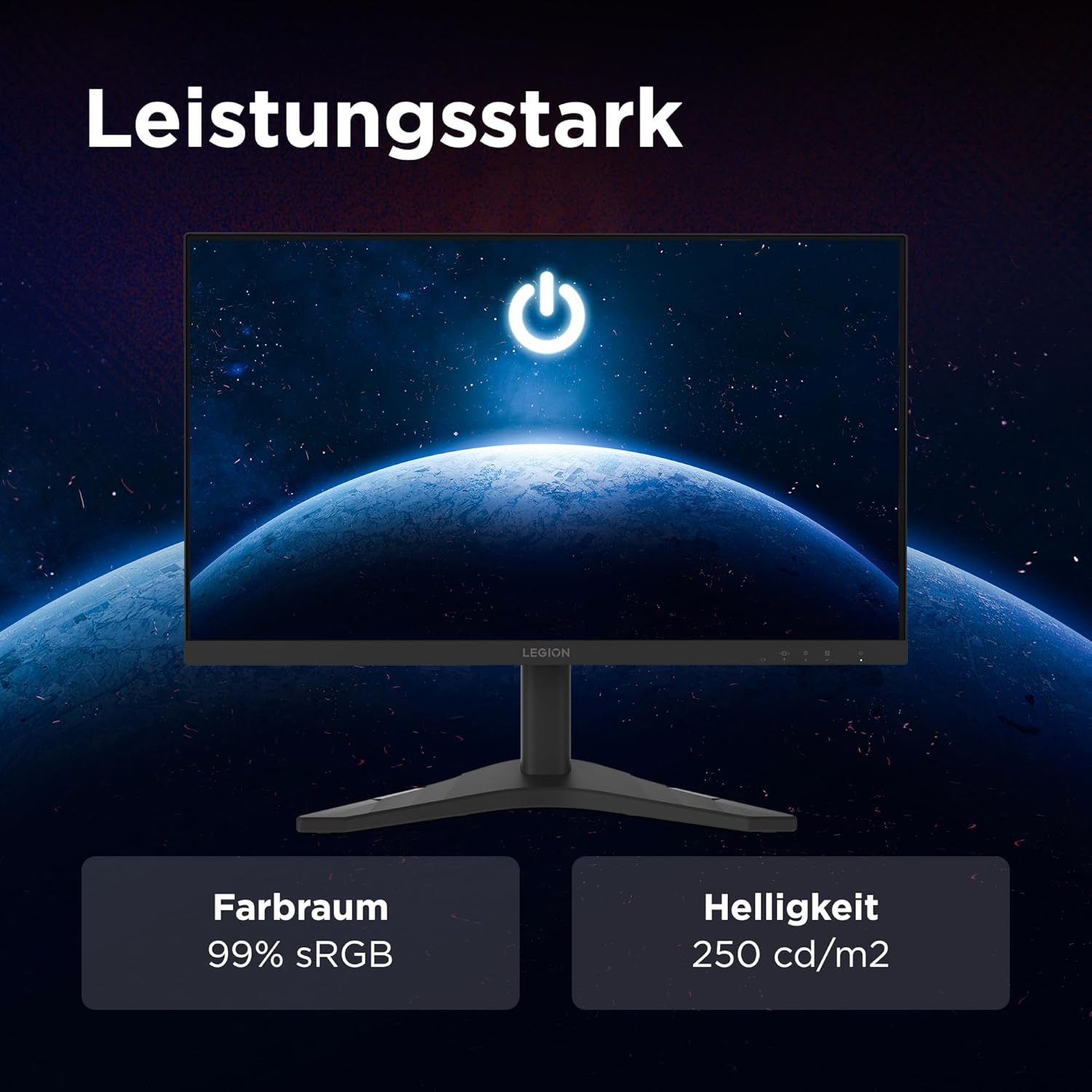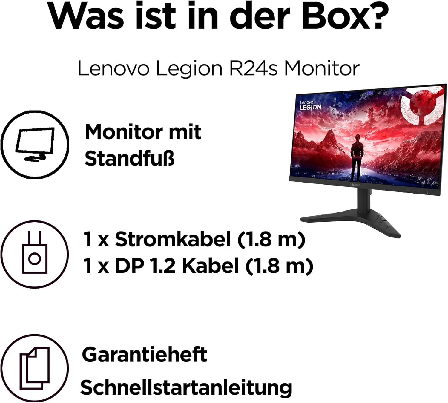 Lenovo Legion R24s | 24-инчов Full HD геймърски монитор | 1920x1080 | 16:9 | 144Hz | Време за реакция 1ms | HDMI | DisplayPort | IPS панел | Стойка | Антирефлексно покритие | TÜV защита за очите | Черен | 3,5 кг