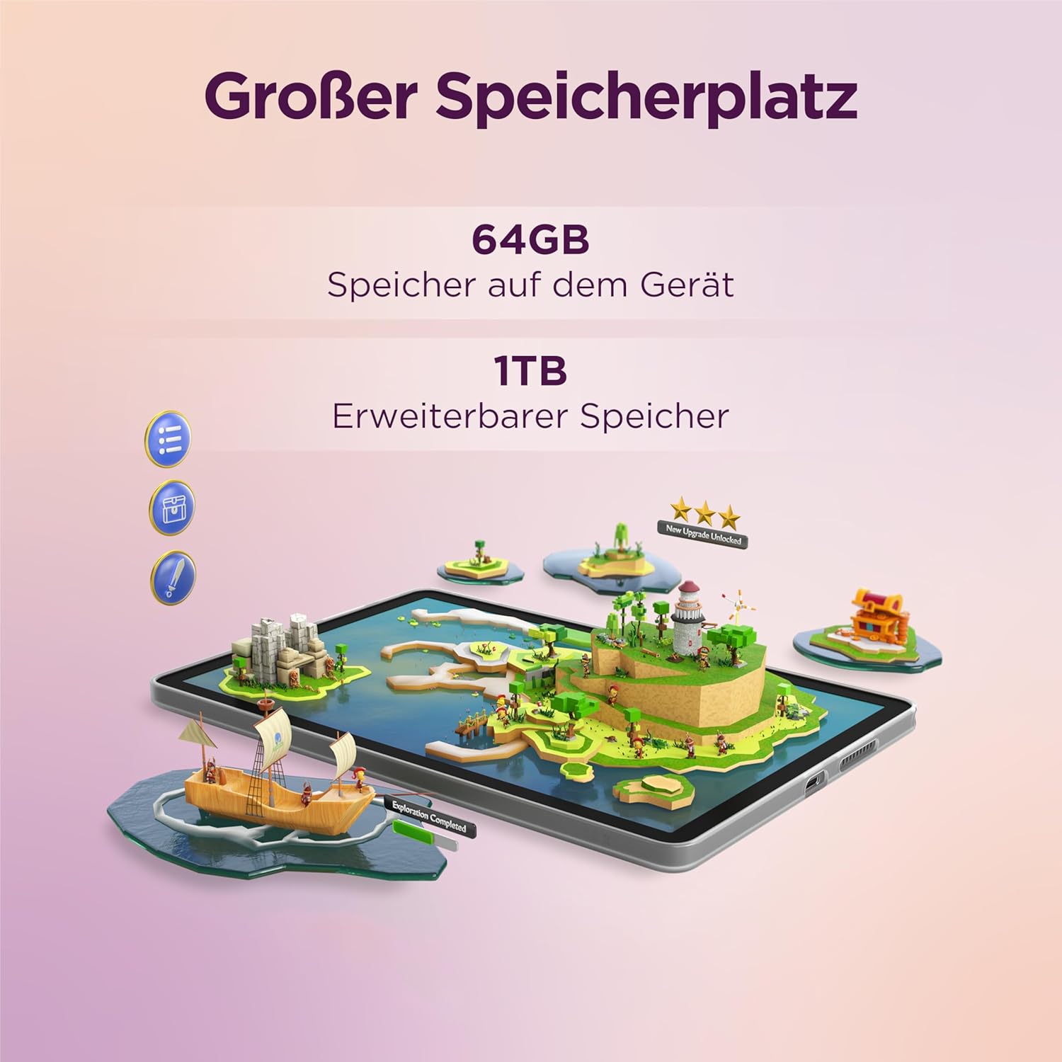 • Преносимост и гъвкавост: С таблет имате свободата да работите, учите или да се забавлявате навсякъде. Лесно се пренася от едно място на друго и предлага гъвкави опции за употреба в различни среди. Паметта е разширяема чрез micro SD карта.