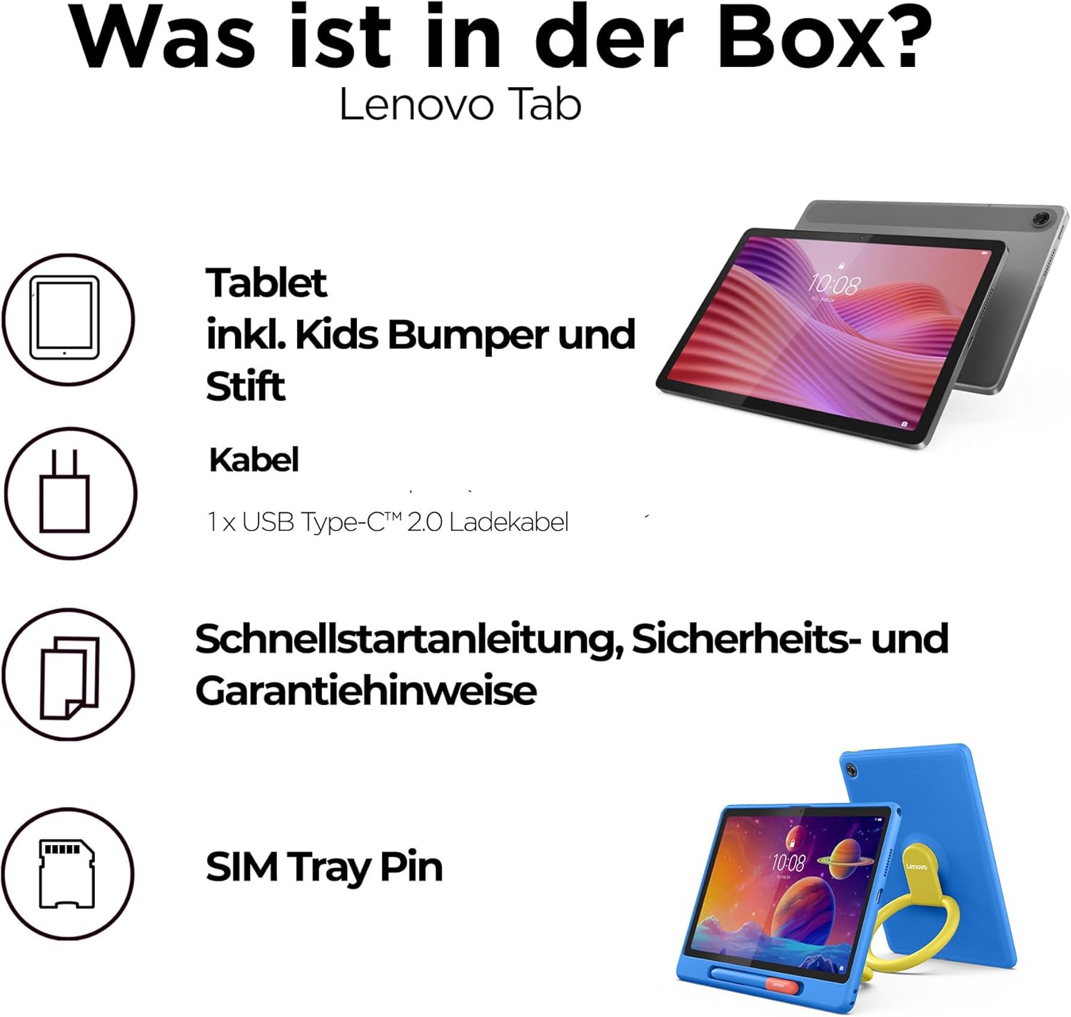 Lenovo Tab Tablet | 10.1-инчов Full HD дисплей | MediaTek G85 | 4GB RAM | 64GB eMMC | Android 14 | Luna Gray Tab Play Suite | Включва детски предпазител и писалка
