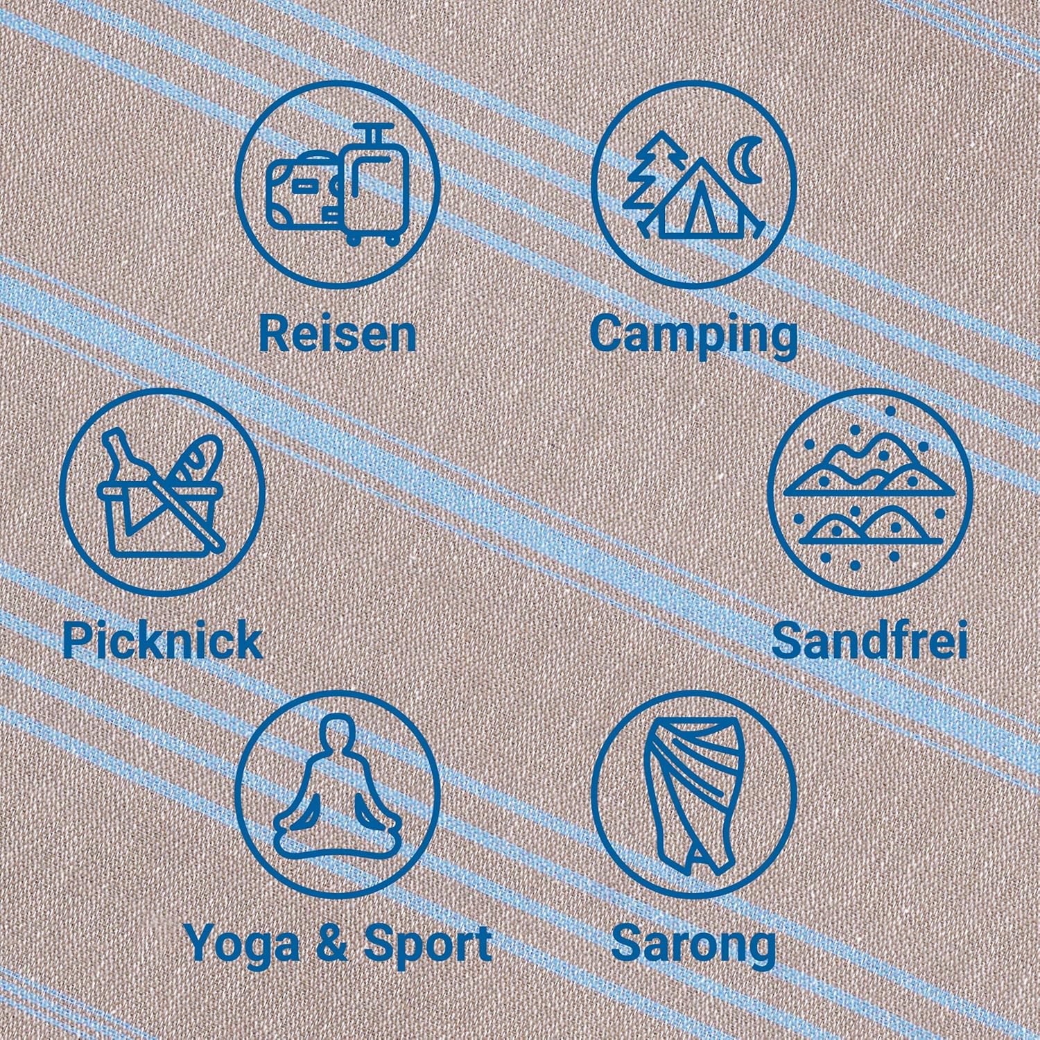 • Многофункционална: независимо дали за сушене, като плажна кърпа, кърпа за сауна, спортна кърпа, кърпа за баня или кърпа за йога – нашата хамам кърпа LeStoff впечатлява със своята многофункционалност. Идеална за пътуване, защото благодарение на лекотата си и възможността за навиване, тя е перфектната кърпа за пътуване и къмпинг.