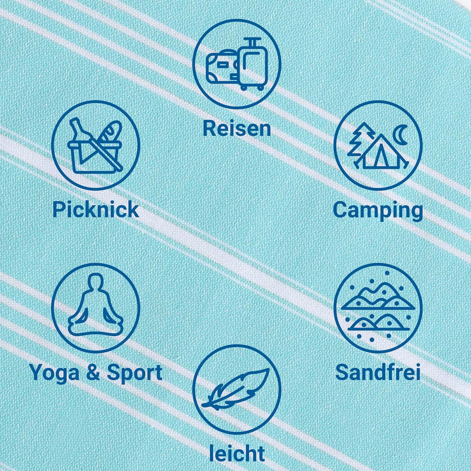• Многофункционална: независимо дали за сушене, като плажна кърпа, кърпа за сауна, спортна кърпа, кърпа за баня или кърпа за йога – нашата хамам кърпа LeStoff впечатлява със своята многофункционалност. Идеална за пътуване, защото благодарение на лекотата си и възможността за навиване, тя е перфектната кърпа за пътуване и къмпинг.
