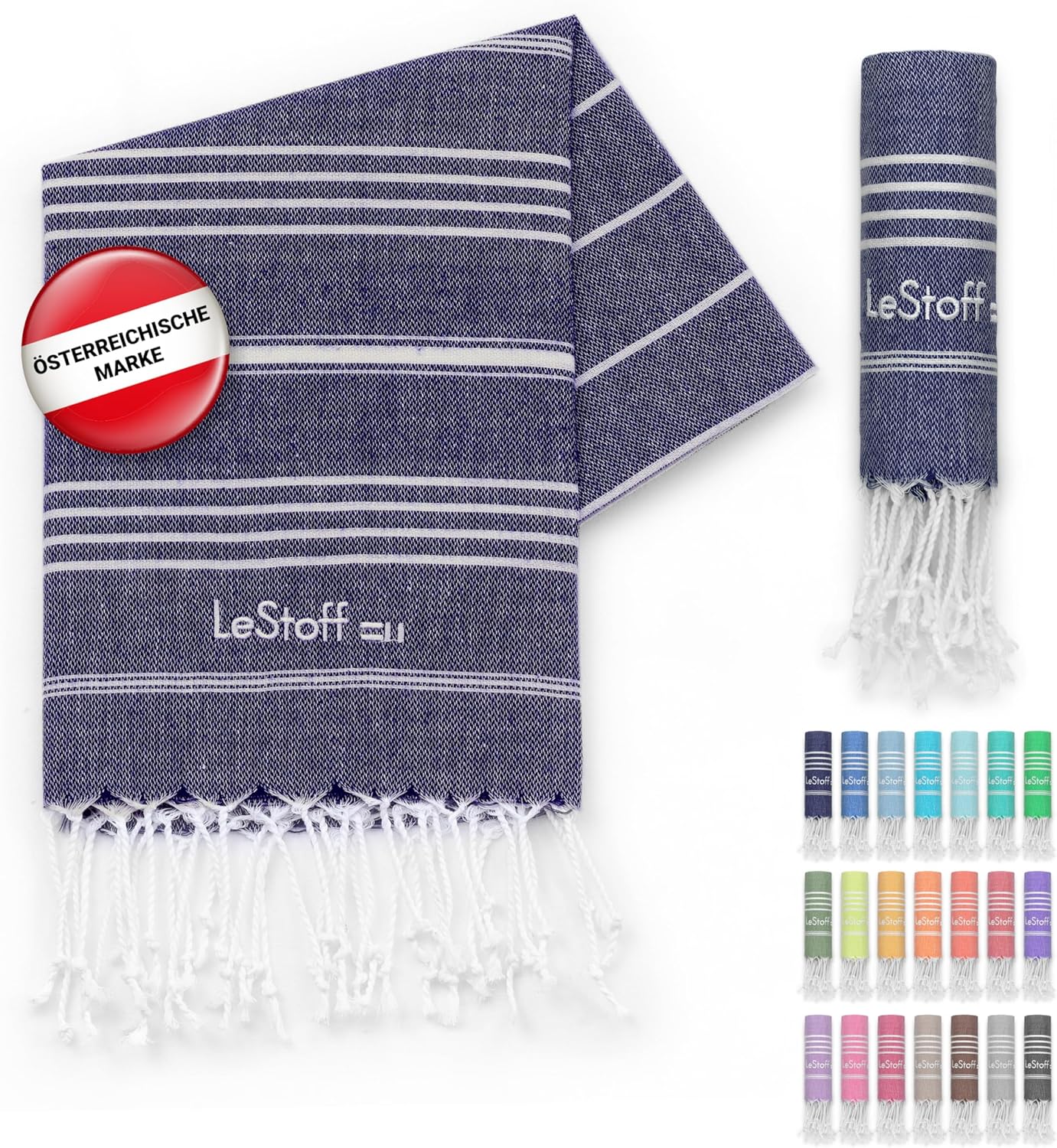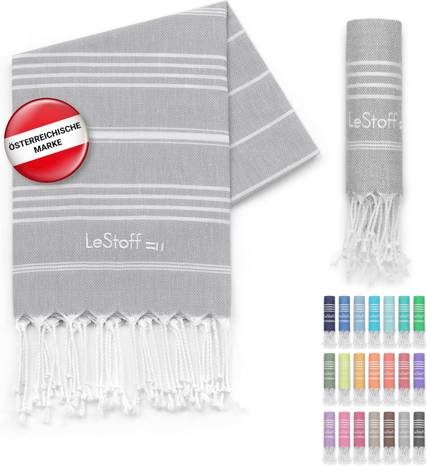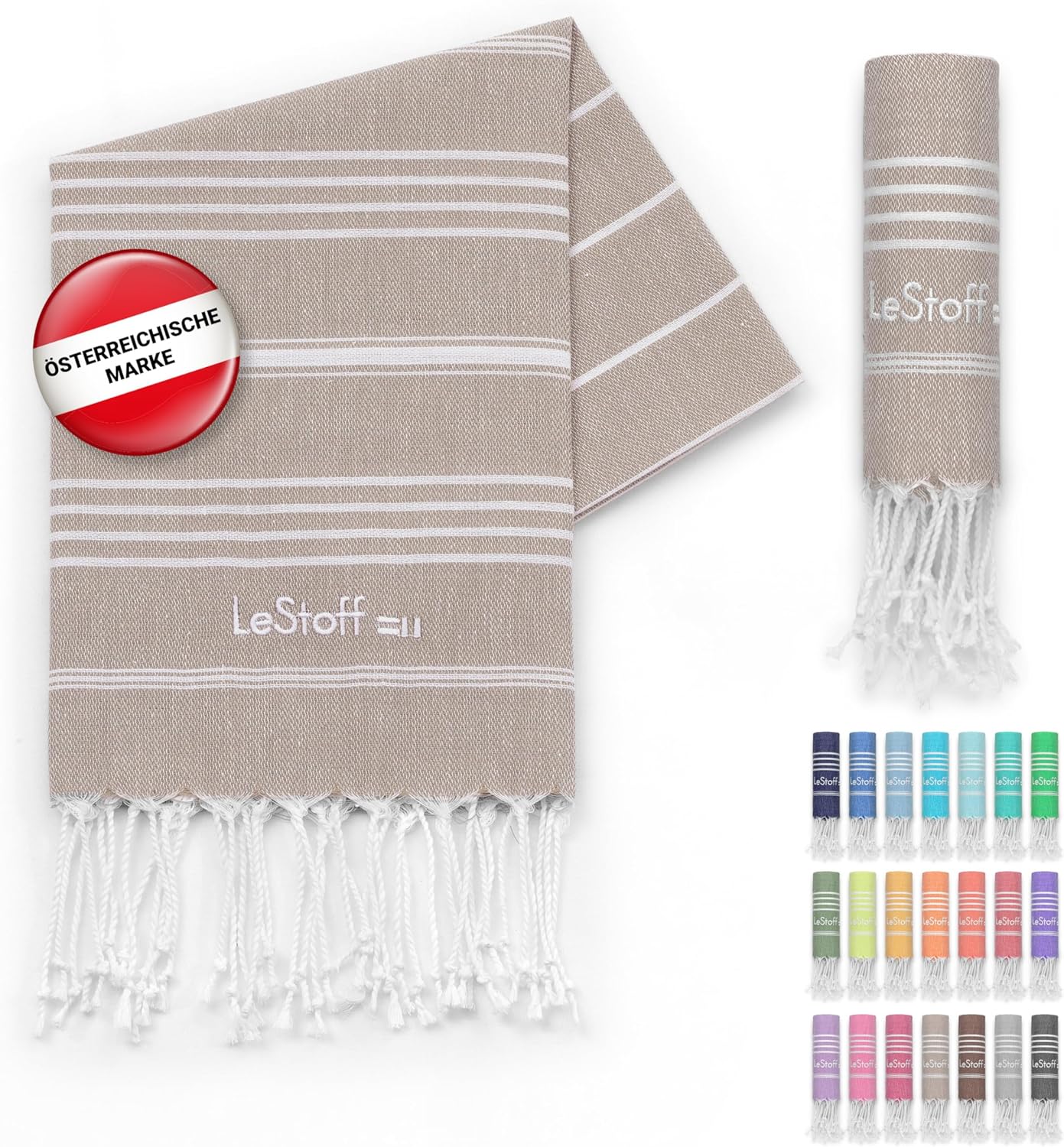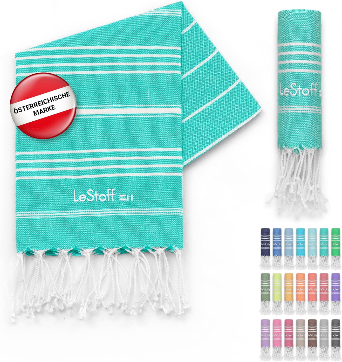 • Многофункционална: независимо дали за сушене, като плажна кърпа, кърпа за сауна, спортна кърпа, кърпа за баня или кърпа за йога – нашата хамам кърпа LeStoff впечатлява със своята многофункционалност. Идеална за пътуване, защото благодарение на лекотата си и възможността за навиване, тя е перфектната кърпа за пътуване и къмпинг.