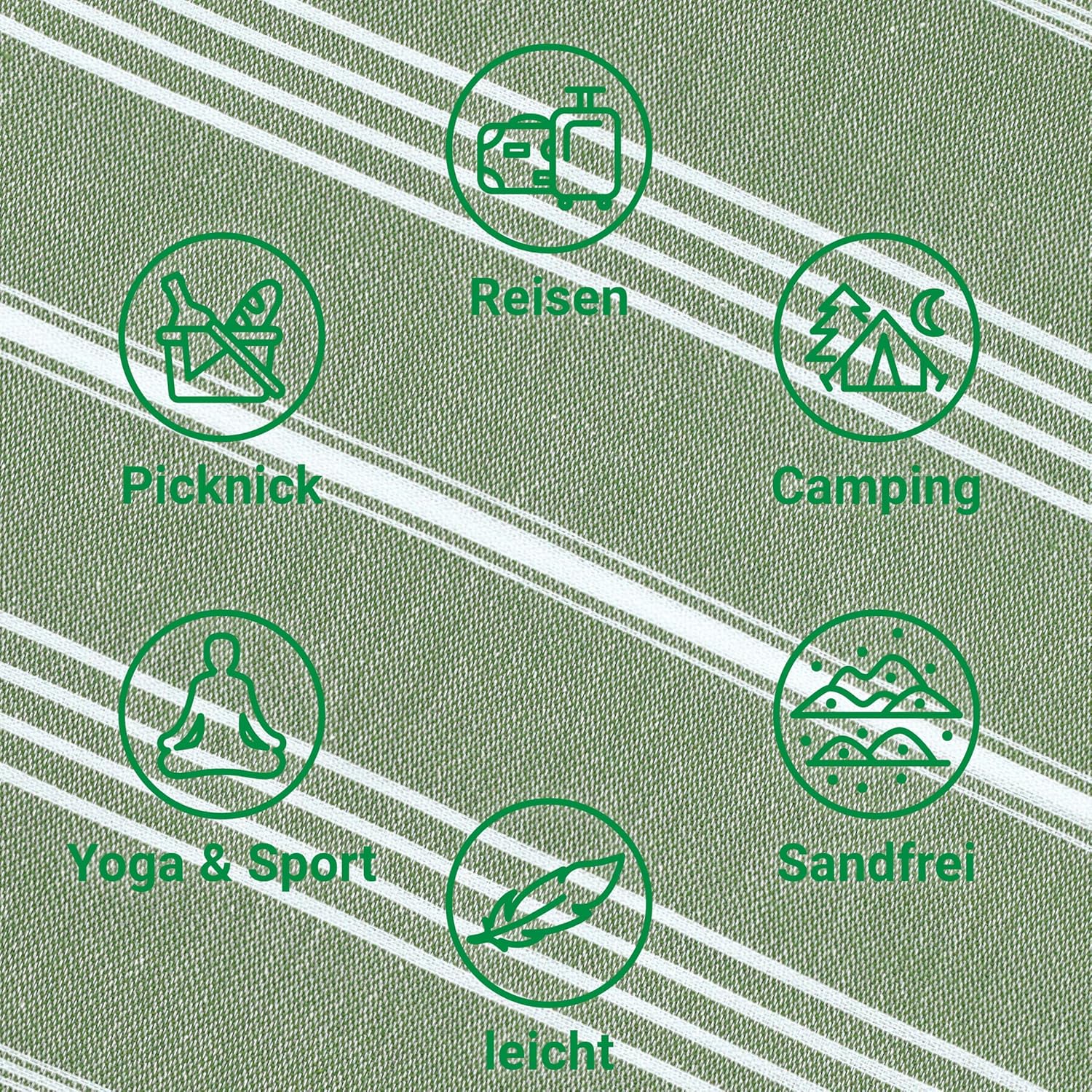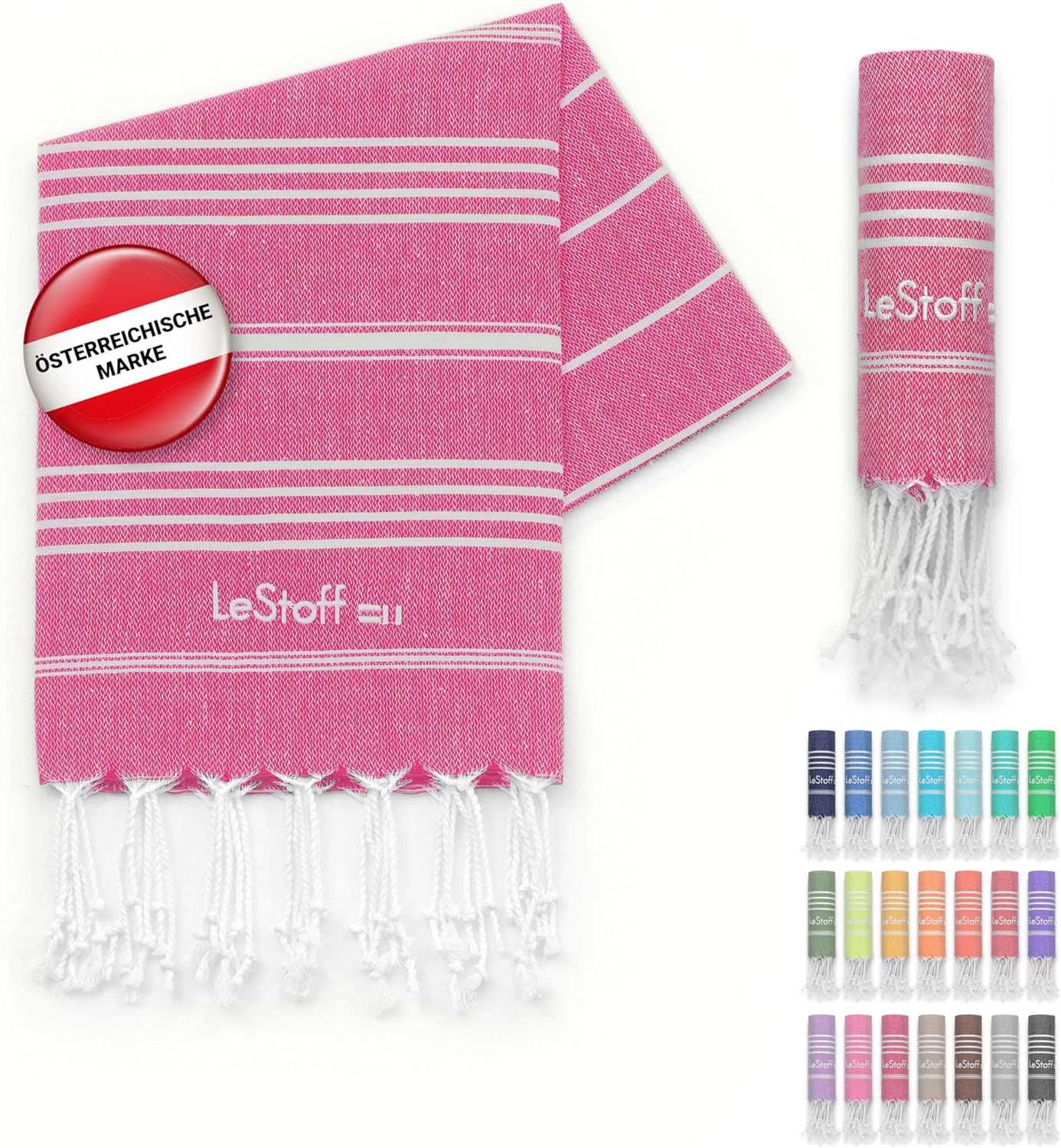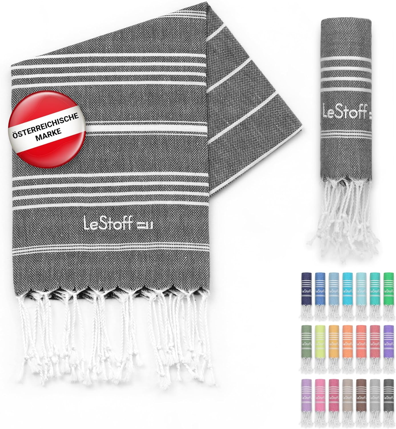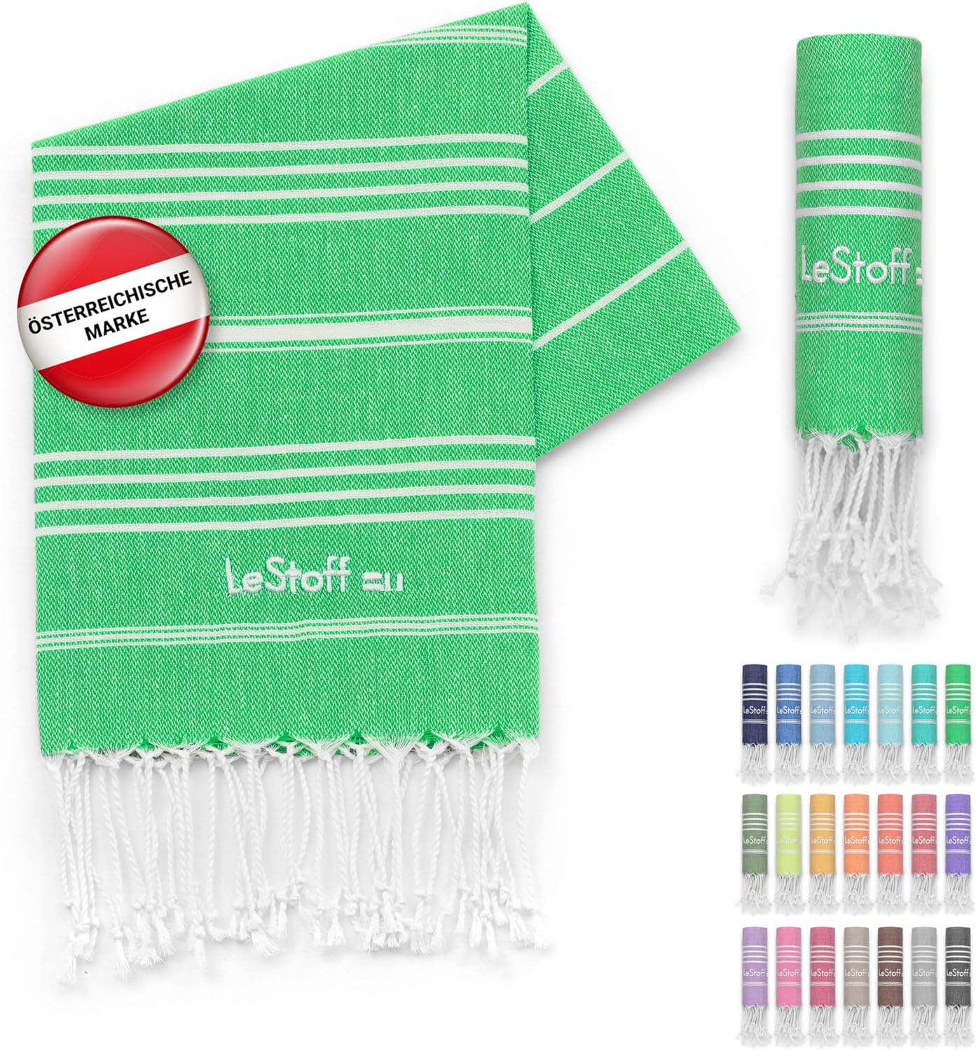• Многофункционална: независимо дали за сушене, като плажна кърпа, кърпа за сауна, спортна кърпа, кърпа за баня или кърпа за йога – нашата хамам кърпа LeStoff впечатлява със своята многофункционалност. Идеална за пътуване, защото благодарение на лекотата си и възможността за навиване, тя е перфектната кърпа за пътуване и къмпинг.