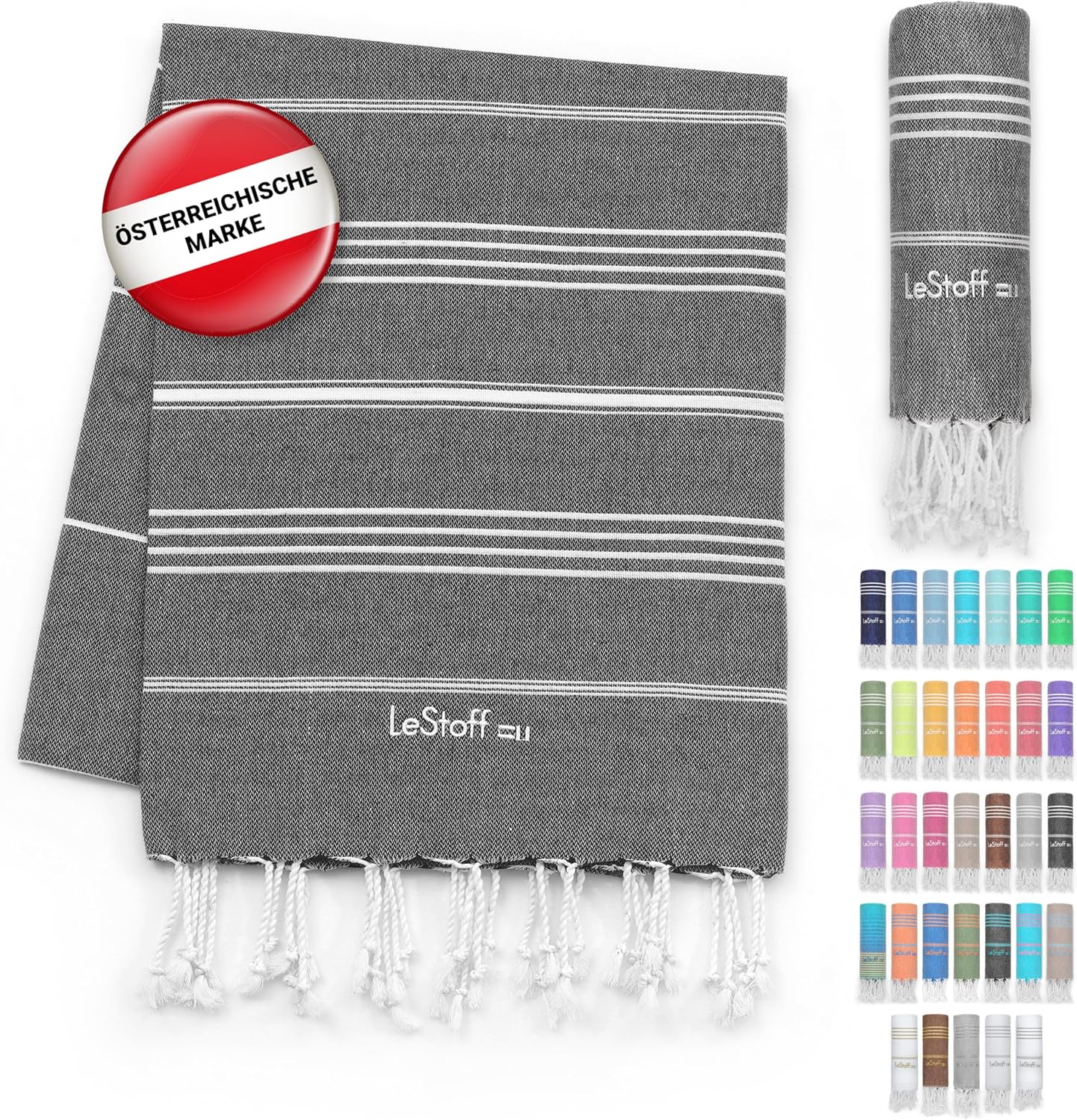 • Многофункционална: независимо дали за сушене, като плажна кърпа, кърпа за сауна, спортна кърпа, кърпа за баня или кърпа за йога – нашата хамам кърпа LeStoff впечатлява със своята многофункционалност. Идеална за пътуване, защото благодарение на лекотата си и възможността за навиване, тя е перфектната кърпа за пътуване и къмпинг.