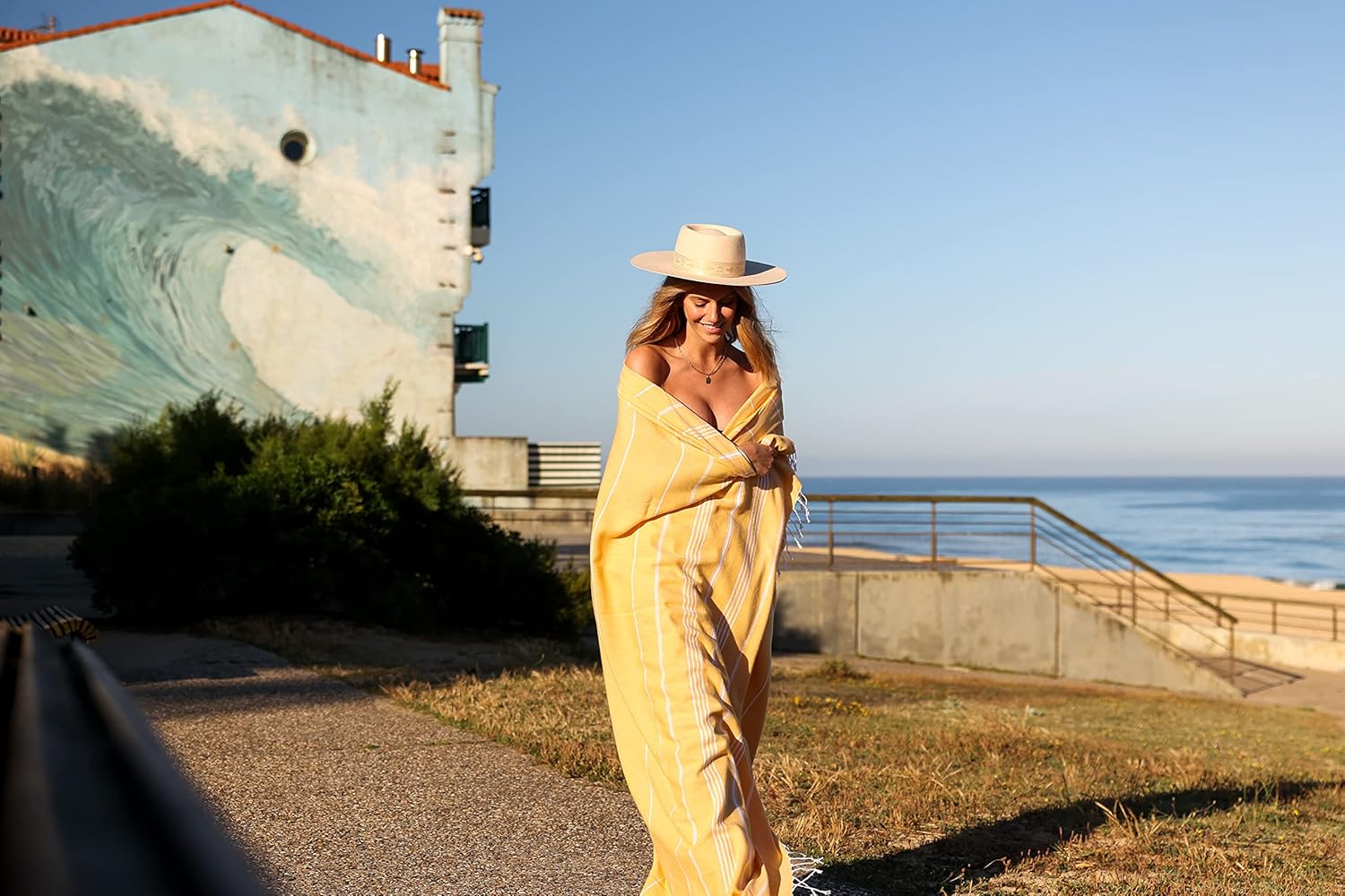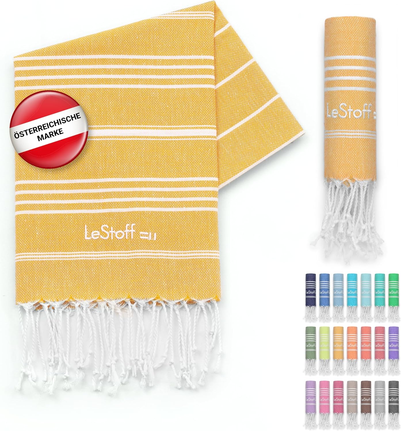 LeStoff Premium Hammam кърпа XXL 200 x 200 см - 100% органичен памук, предварително изпрана, устойчива, абсорбираща и бързосъхнеща, одеяло за пикник, плажна кърпа, за плаж, баня, йога, къмпинг и пътуване, жълта